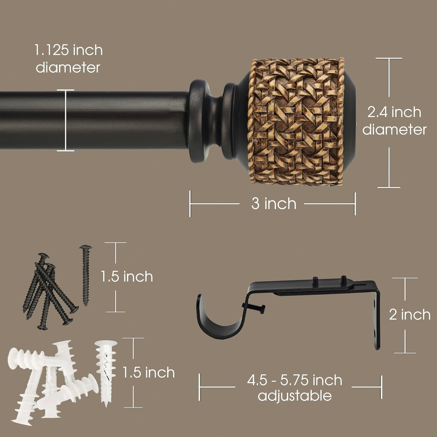 ILAISIHOME 1-1/8 Inch Diameter Curtain Rods with Faux Rattan Cane Woven Finial, Telescoping Single Curtain Rods for window , 1 pack