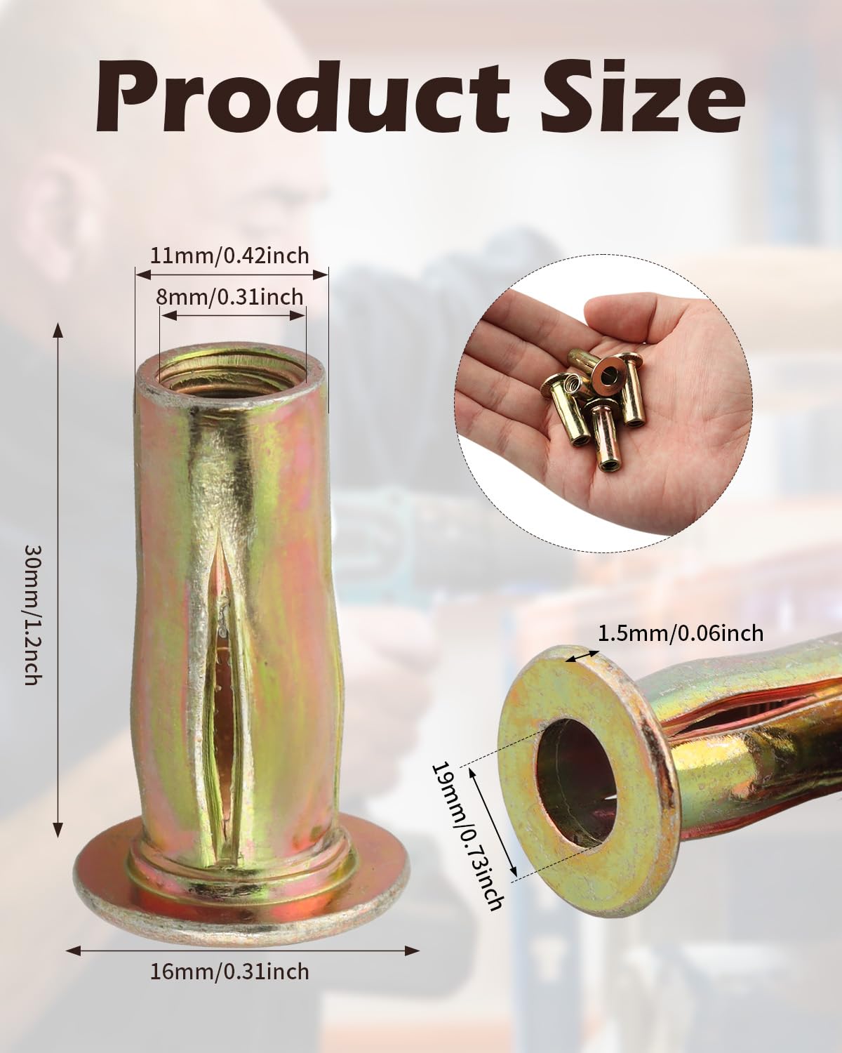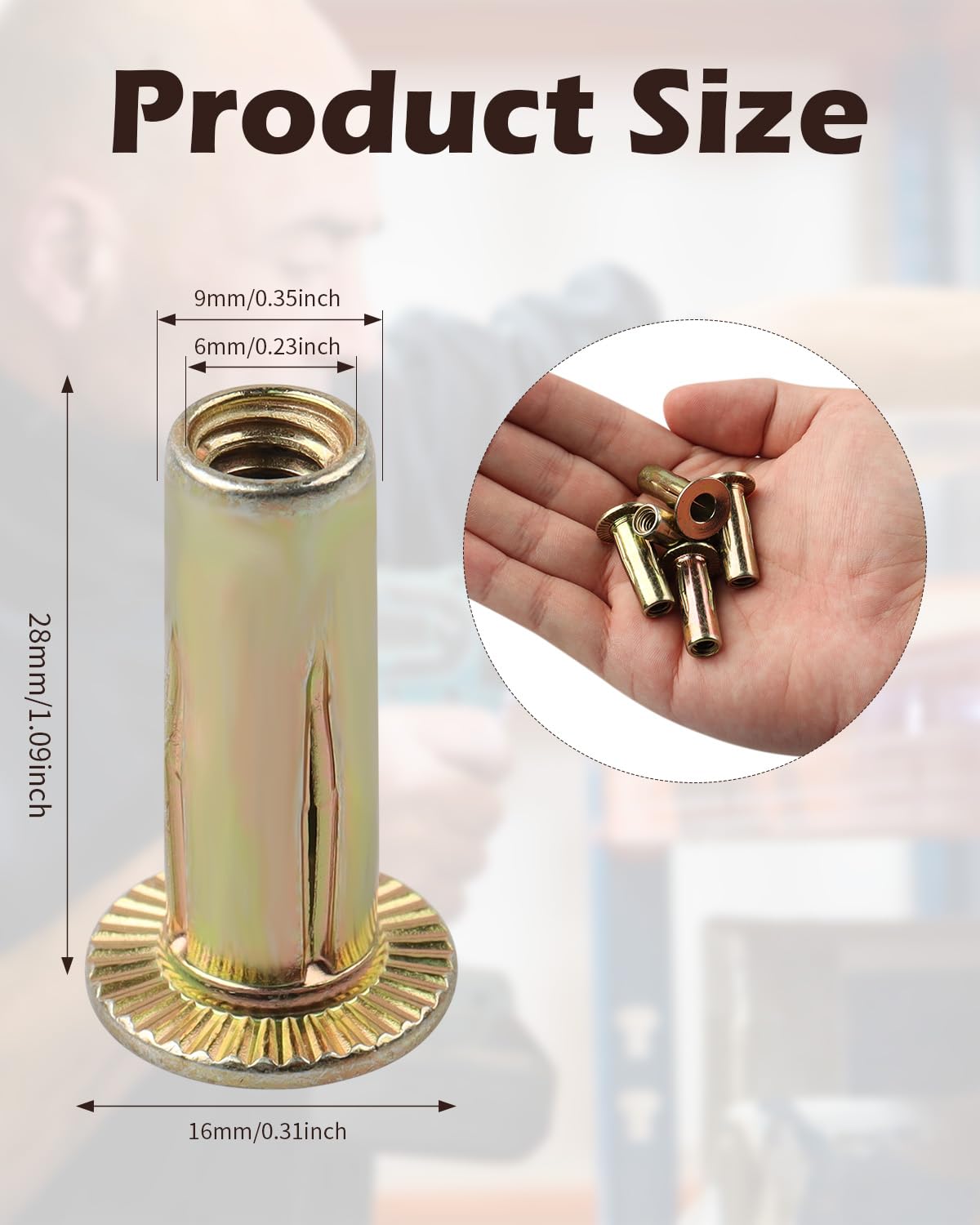 50 Pack Multi-Grip Rivet Nut Kit, 5/16-18 Rivet Nut Steel Pre-Bulbed Shank, Plus Nut Color Zinc Plated Flat Head Threaded Insert Nut