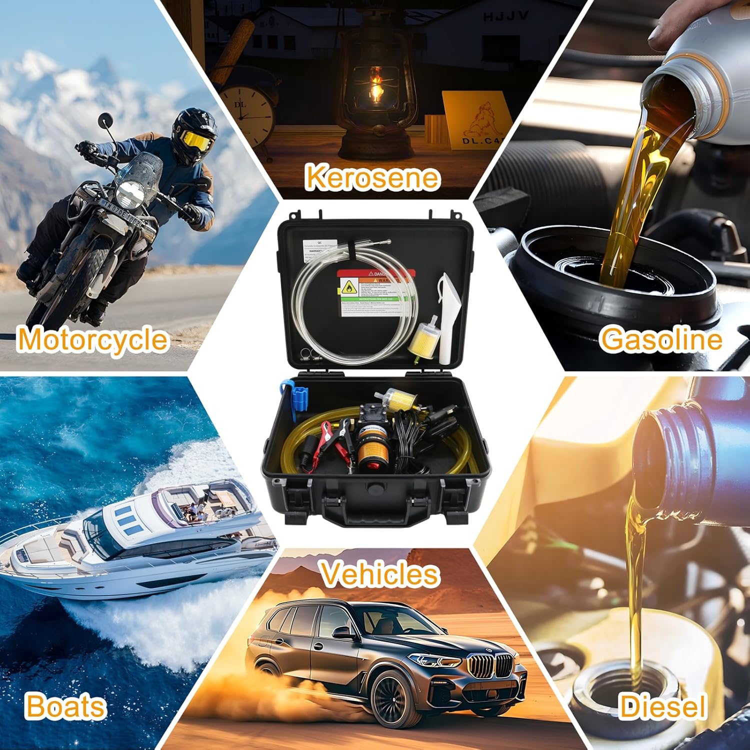 | Included Components | 110GPH Fuel Transfer Pump with Portable Case, Fuel Transfer Hose + Inlet Filter *2, Power Cords *2, Pulley Conduit *1, White Funnel + Blue Retaining Clip |