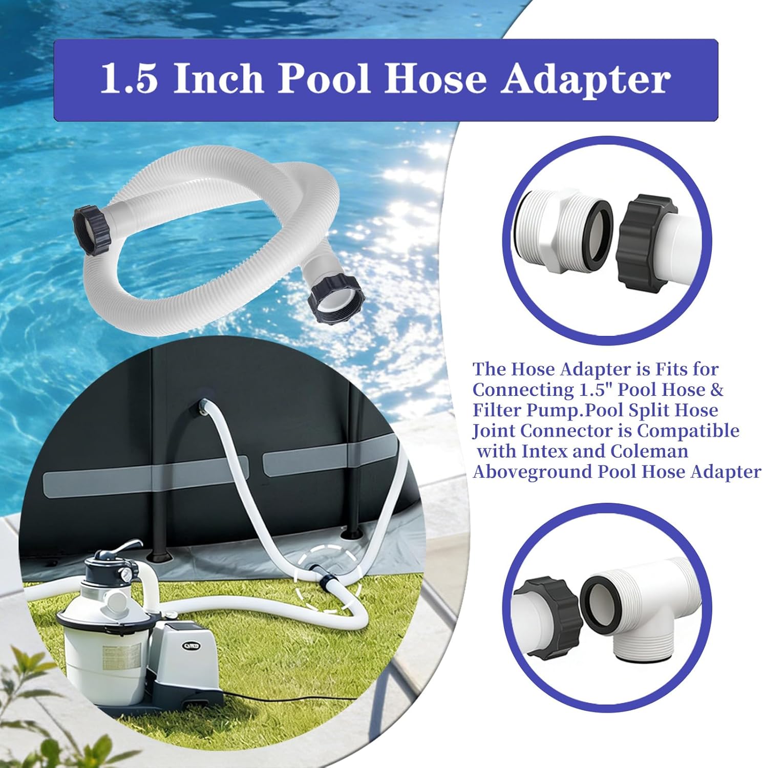 | Included Components | 2Pcs 29060E 1.5 inch diameter pool filter hose +1Pcs pool split hose joint connector with 2Pcs O-Ring Gasket + 1Pcs pool hose T splitter connector with 3Pcs O-Ring Gasket +1Pcs Plumbers Tape |