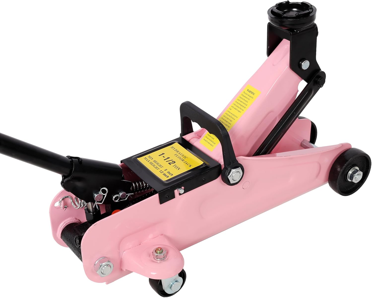 1.5-Ton Low-Profile Hydraulic Floor Jack with Rapid Lift Pump – Ideal for Sedans and SUVs 5"-11.8" Lift, Pink