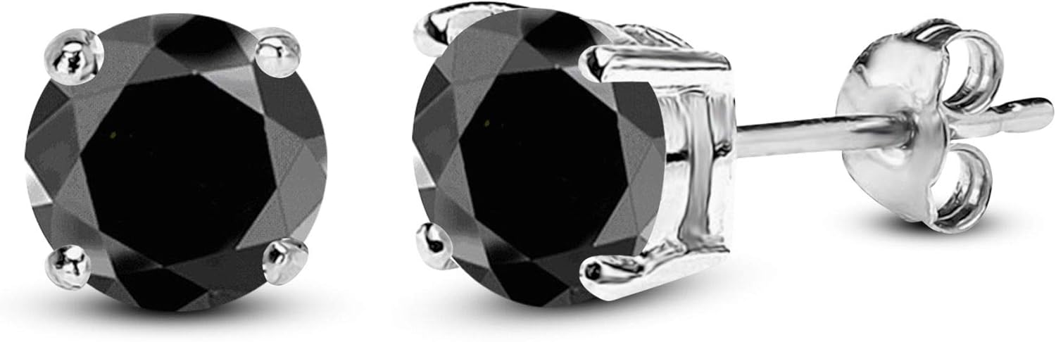 Gemstar Jewellery 18K White Gold Plated Round Black Simulated Diamond Stud Solitaire Earrings 925 Silver