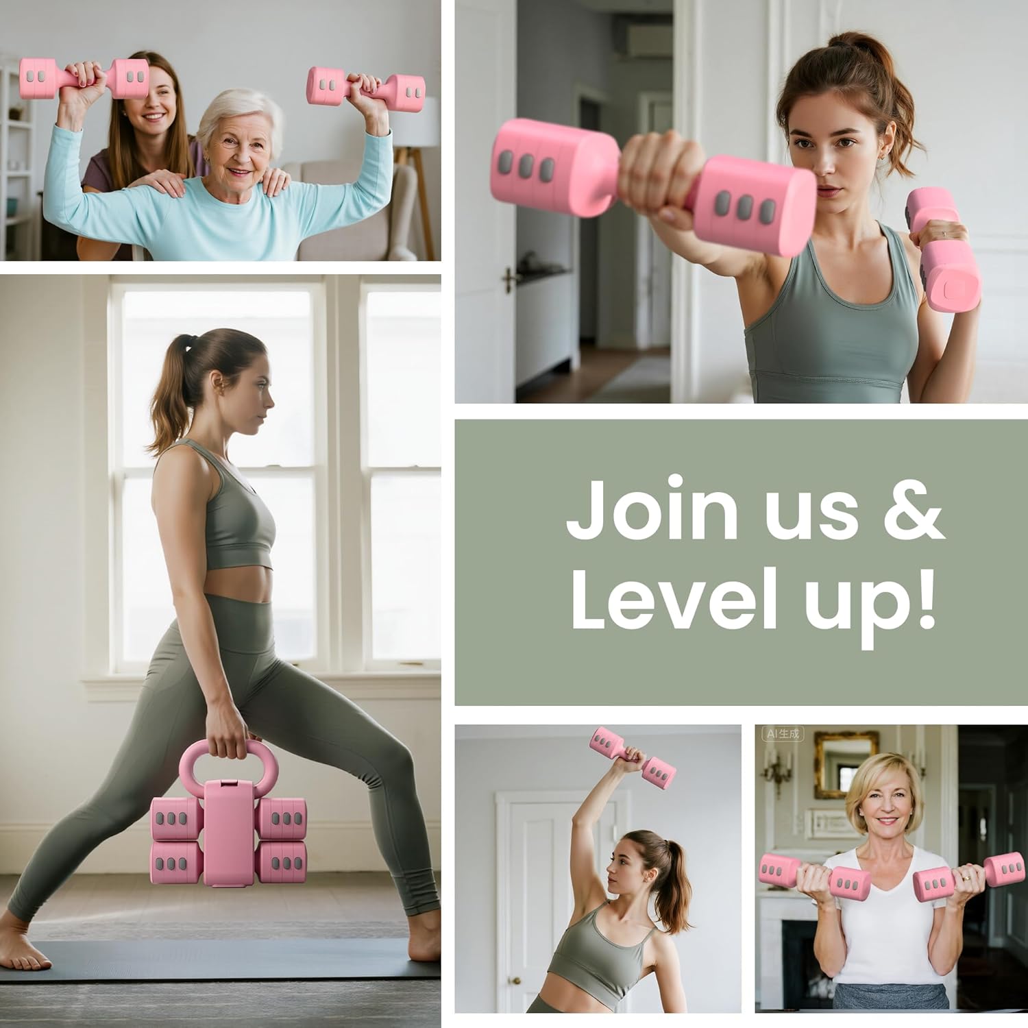 2-in-1 Adjustable Dumbbell Set for Women - 4 Levels (2.2lbs to 12.1lbs) - Home Gym Weights for Women at Home - Fitness Dumbbells