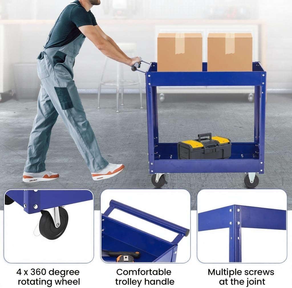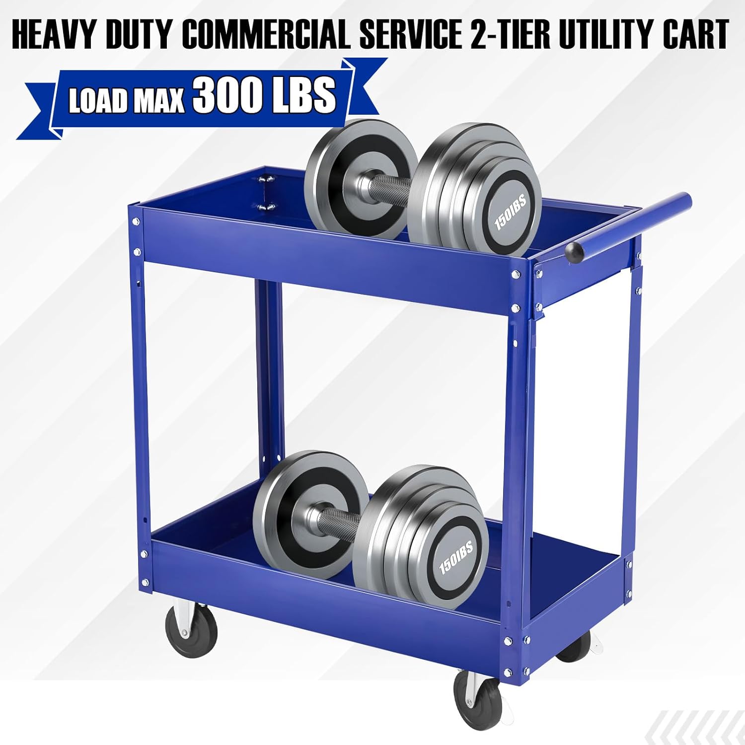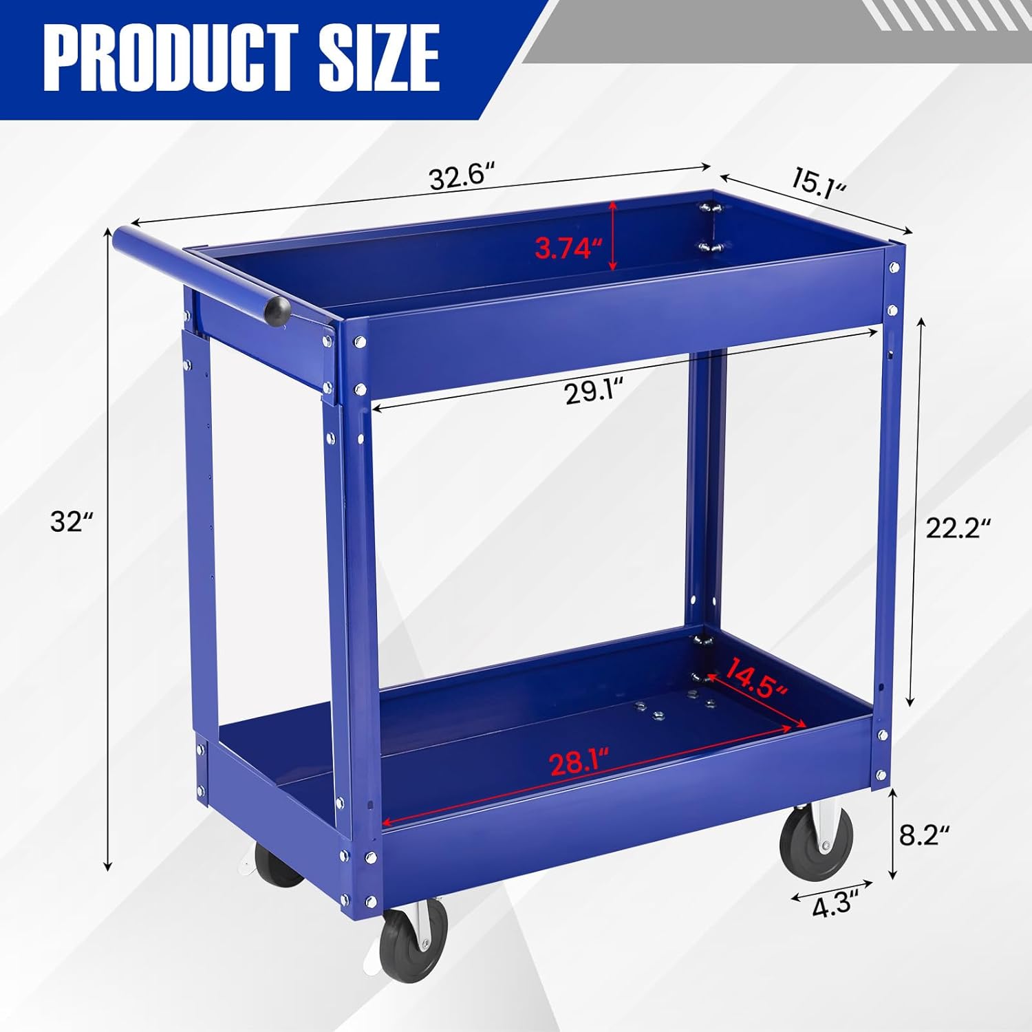2 Tier Metal Utility Cart,330 Lbs Metal Heavy Duty Utility Cart On Wheels,2 Shelf Steel Rolling Tool Cart, Tool Storage Organizer for Mechanic, Garage, Workshop, Warehouse & Repair Shop