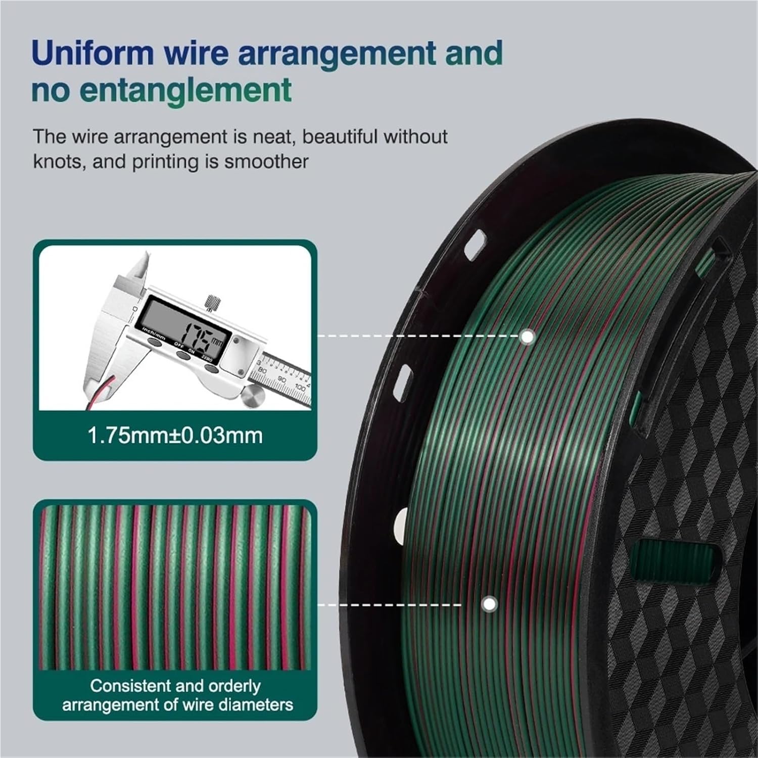 Multi-Color: White,Black,Red,Gold,Copper,Yellow, and Multicolor... Filament Diameter: 1.75mm. Tolerance: +/- 0.05mm. Recommended Extrusion/Nozzle Temp for TPU.: 200 - 230° C (410~ 446).Recommended Extrusion/Nozzle Temp for PLA.: 190 - 220° C (410~ 446).Heated Bed Temp.: 70 - 100° C (158~ 176).Print Speed: 25-30m/s.Density: 1.25±0.05g/cm3Net Weight: 200gFilament type:Silk PLA/TPUGross weight:350g/coilBubble:100% no bubblePackage List:200g filament==========High-concerned chemical : NoneMaterial : PLA/TPUModel Number : 200g filamentForm : SolidDiameter : 1.75mmFilament type : Silk PLA/TPUGross weight : 350g/coilColor : MulticolorPackage List : 200g PLA/200g TPUApply for : 3D printer/3d pen for kids filament