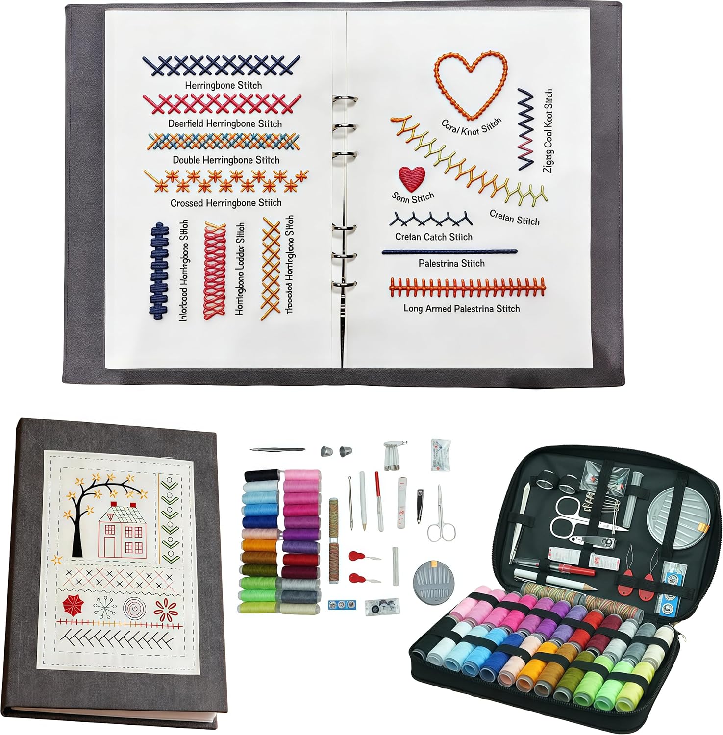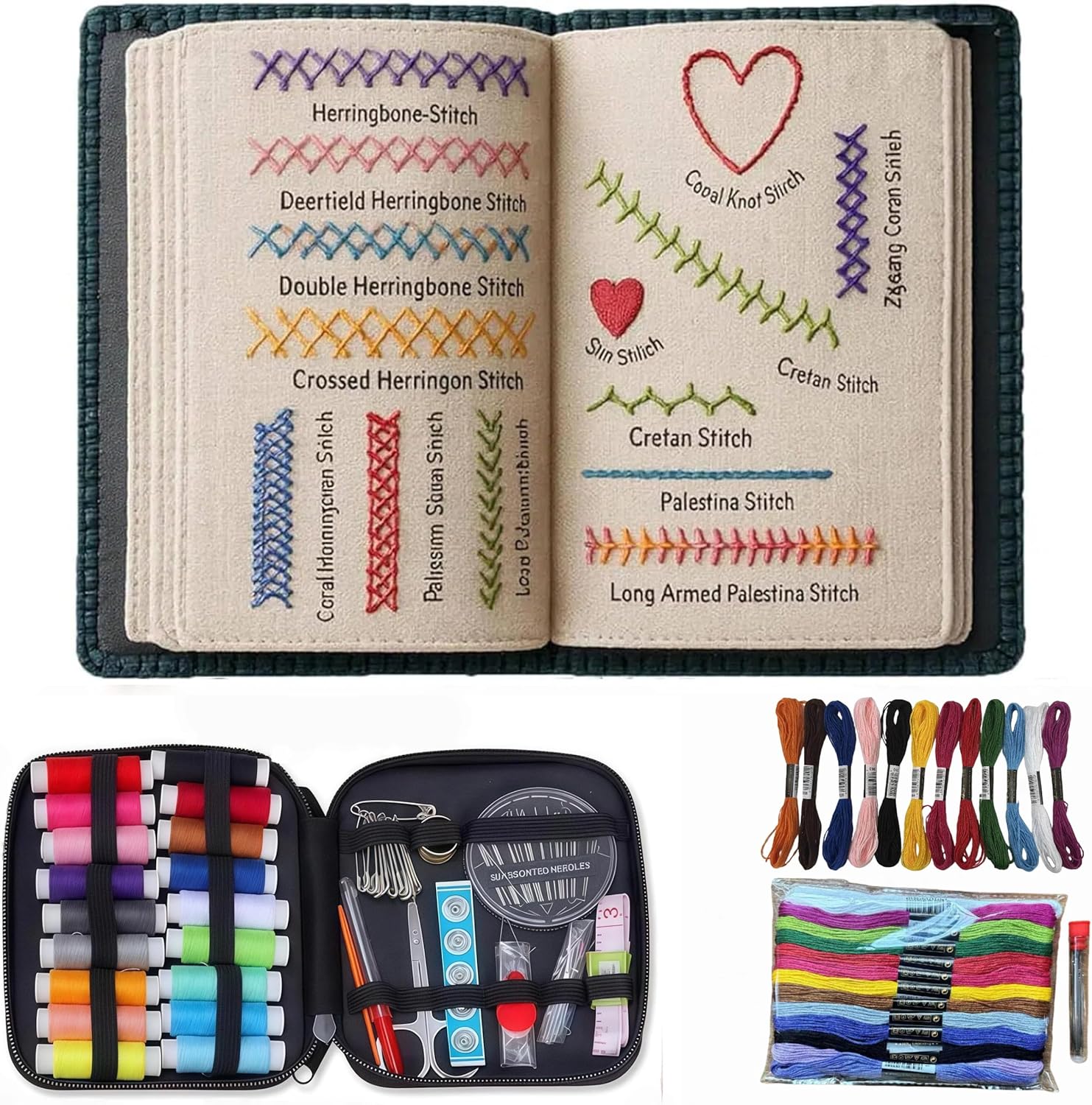 This DIY embroidery stitch book is specifically designed for beginners, featuring a comprehensive collection of many different patterns along with a complete embroidery toolkit. It serves as both a foundational stitch dictionary and an introductory guide to embroidery and sewing techniques, enhancing your skills while enjoying the art of stitching. Master hand embroidery with ease, unleash your creativity, and gradually improve your skills. Unleash your creativity anytime, anywhere, and stimulate your imagination and focus. 【Product Specifications】Four versions for you to choose from Product Name: Embroidery Stitch Book Kit 【Package Includes】 A Set of Embroidery Stitch Book and Sewing Kit Each version is marked with different size information. Please refer to the product image