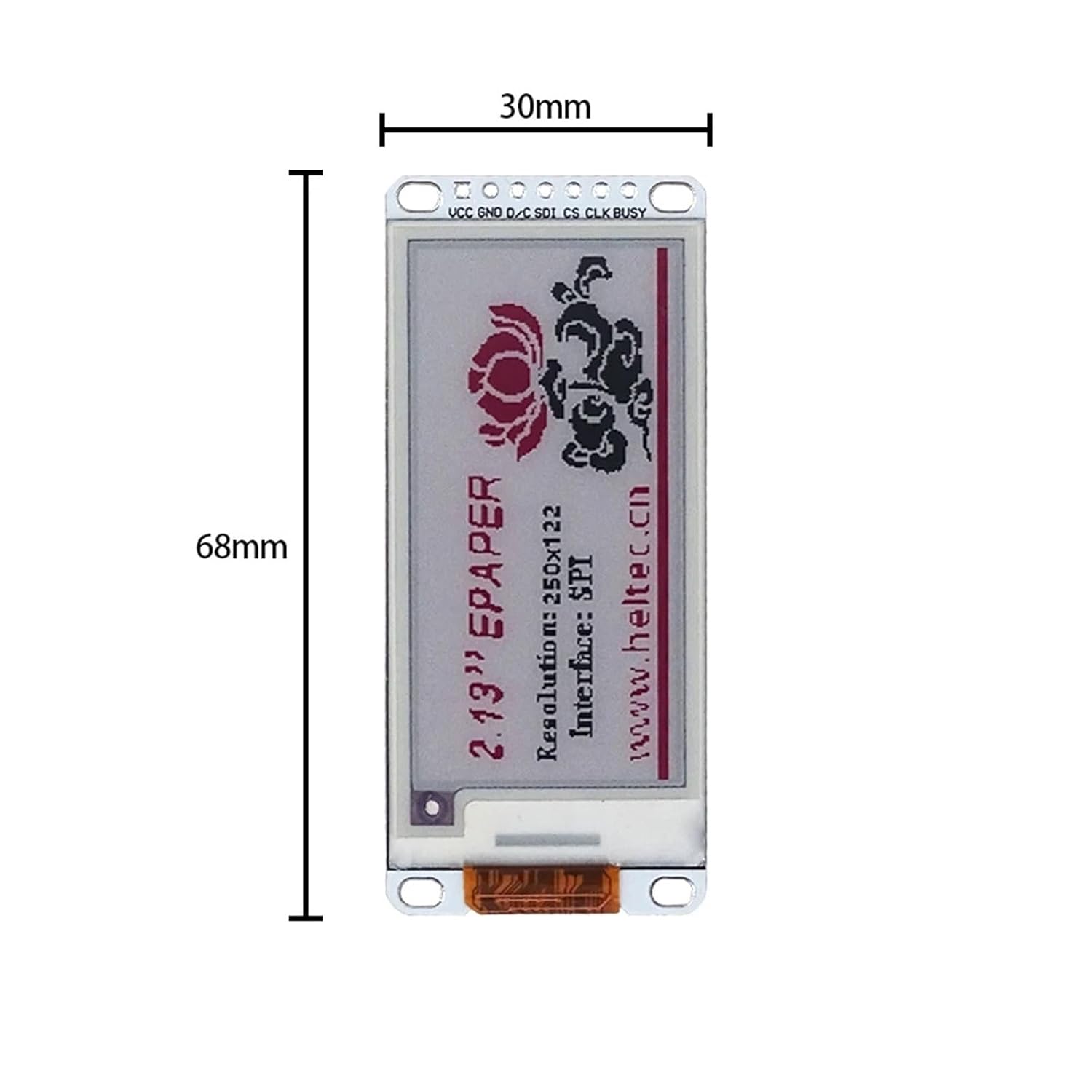 Sensor BlocksWorking voltage:3.3V Size:2.13 inches Color:black,white,red Viewing angle:>170 ° Global refresh time:8S Refresh method: global refresh Communication:SPI,only 4I/Oport Resolution:212*104 Controller IC:IL0373F Operating temperature:0~50° Ultra-low power consumption:refresh 24.5mW Pin Definition: VCC:3.3V GND:Ground CLK:Clock simulation CS:chip select signal SDI:data input, similar to MOSI D/C:command / data switch Application: Smart home Smart watch,smart wear Mobile payment,shelf labels Internet of Things products,industrial instrumentation display Support Global refresh,refresh power consumption, refresh once displayed sixmonths Size:6.8x3cm/2.68x1.18inch Package Includes: 1x 2.13 Display Screen 1x pin '