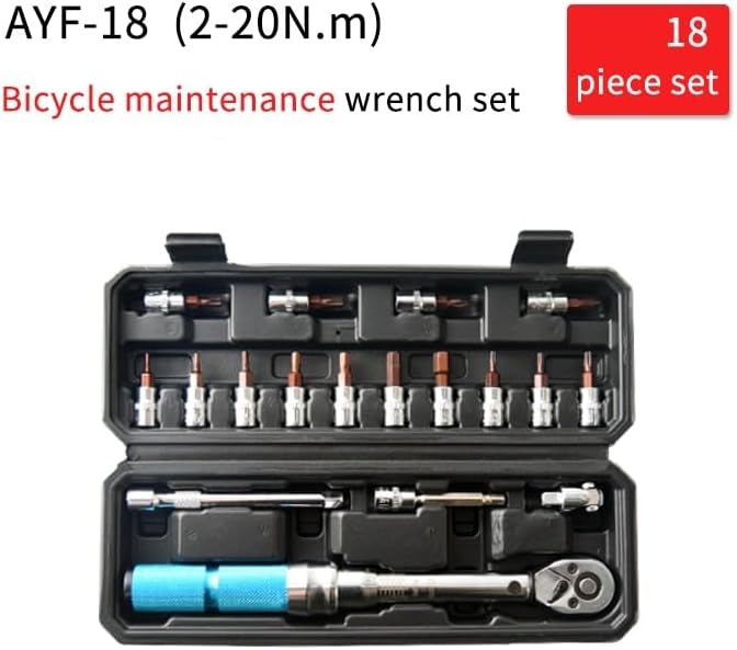 This comprehensive 21-piece bicycle tool set provides home mechanics and professionals with the essential tools for professional bicycle assembly, repair and maintenance. The set includes a click-on 1/2" torque wrench with ±4% accuracy to properly tighten parts in the 5-25 Nm range. It includes the most common bike socket sizes (17mm, 19mm, 21mm, 24mm) in durable CRV steel and a handy 5" extension for hard-to-reach places. Versatile hex bits (2/3/4/5/6mm), PH1/2/3 bits, 1/2" to 3/8" adapters, and connecting rods provide total convenience. The blow molded case makes this tool set both protected and portable. With the ability to remove and install parts to specification thanks to a precision torque wrench, this 21-piece bike tool kit is a must-have for the home mechanic. It offers professional-grade tools at an affordable price, covering all bolt and screw sizes needed for bike assembly, repair and maintenance.