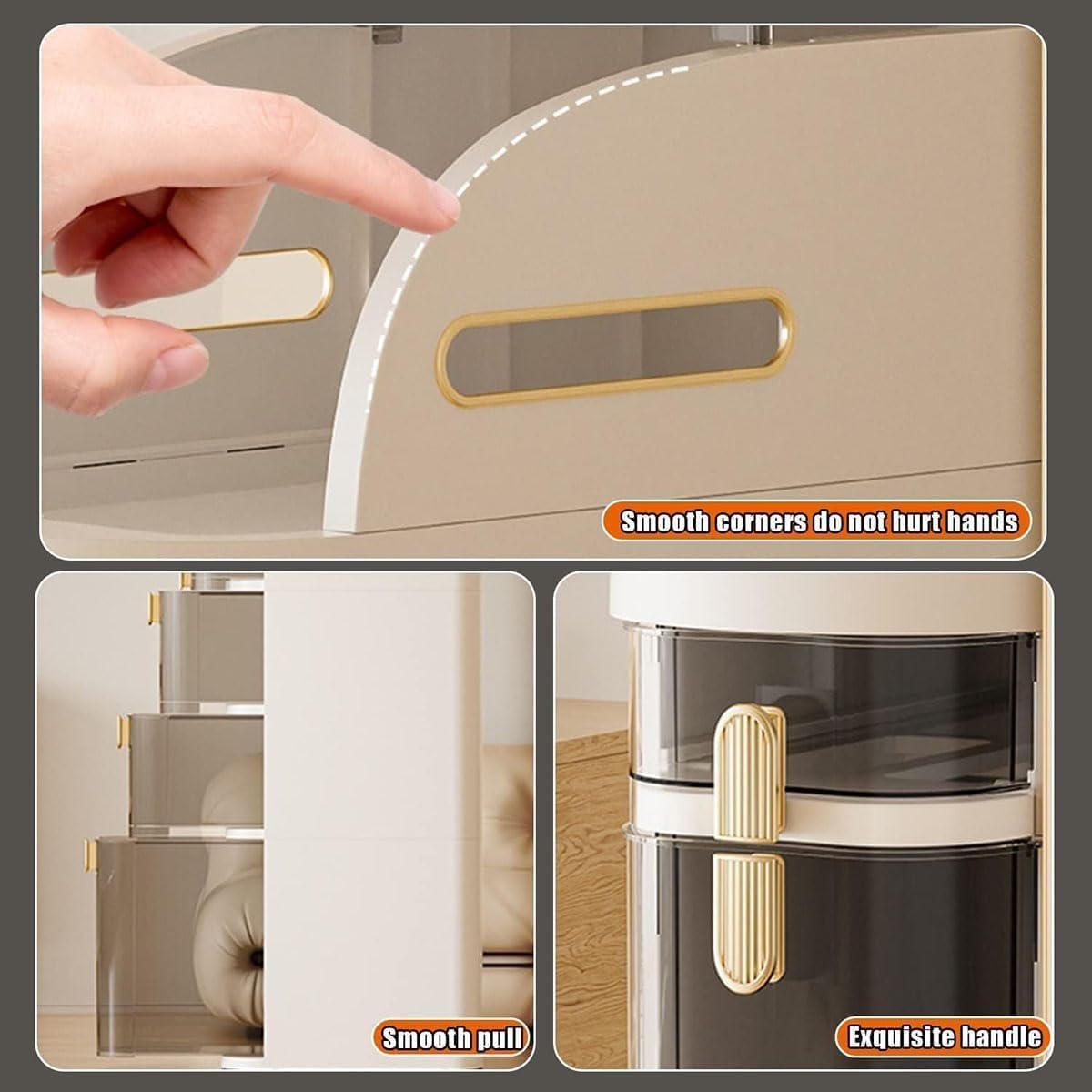 The compact size and caster design of this skinny cart make it a handy confined space helper. Can be used in kitchens, pantries, bathrooms, bedrooms, closets, offices, apartments or dorm rooms. Provides a generous storage solution in tight spaces.Product Features:? Thoughtful paper drawer designHidden space at the top can be opened to store items, and a recess at the top can store toiletries and miscellaneous items? With drawer designYou can have more options to organize your bathroom items, namely cabinet top display, easy shelves and drawer storage. Its simple and modern style also suits a variety of home decor.? Wide range of applicationsFreestanding floor storage can be used in any space such as your bathroom, living room, laundry room, kitchen, hallway, etc. for storing towels, hygiene products, snacks, shoes and other items.Product Specifications:Product Name:Storage CabinetProduct Color:WhiteProduct Material:PPProduct style: simple modernInstallation: countertop type / floor typeProduct packaging:1* Clamp cabinet1* Pulley Warm tips:Due to manual measurement, there may be 1-3 cm error. Since we ship internationally, if the product is damaged or deformed during shipping, please contact us and we will provide you with a satisfactory solution within 24 hours.