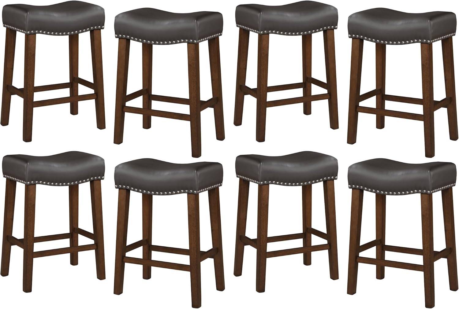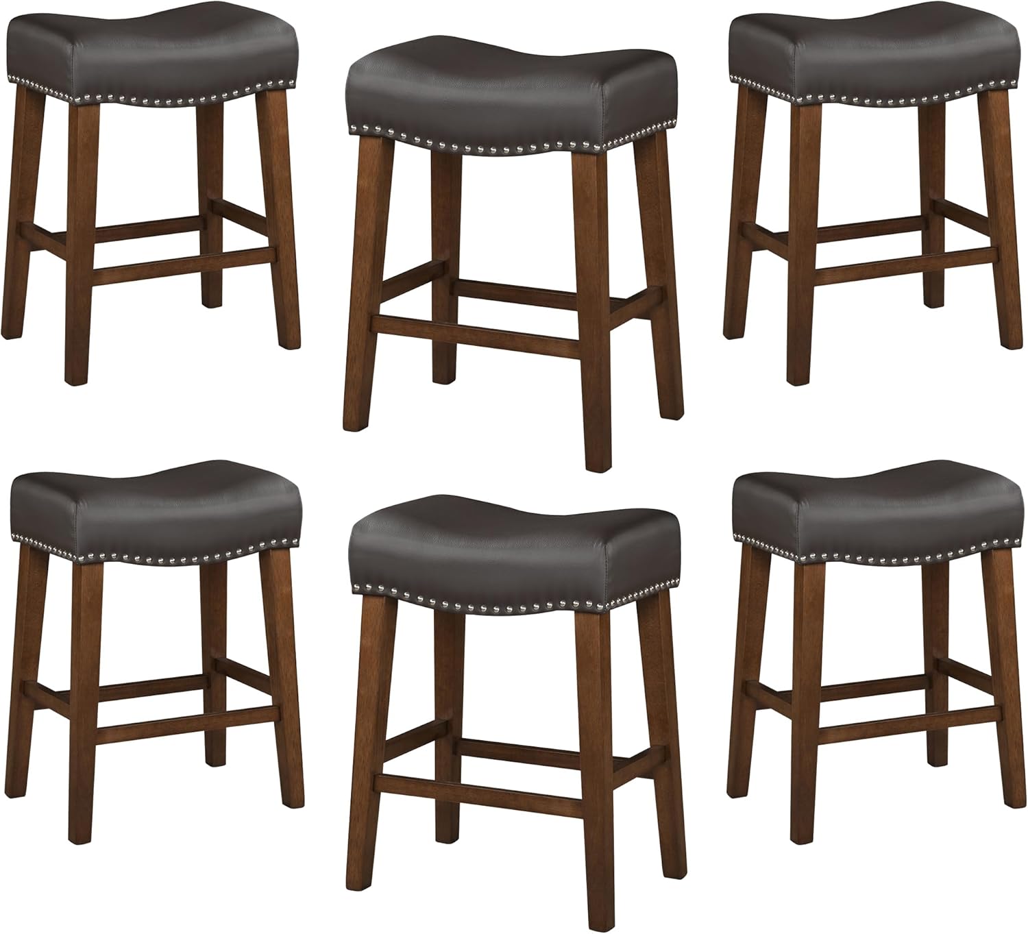 | Additional Features | Ergonomic Saddle Design, Four Footrests, Nailhead Trim, Natural Rubber Wood |