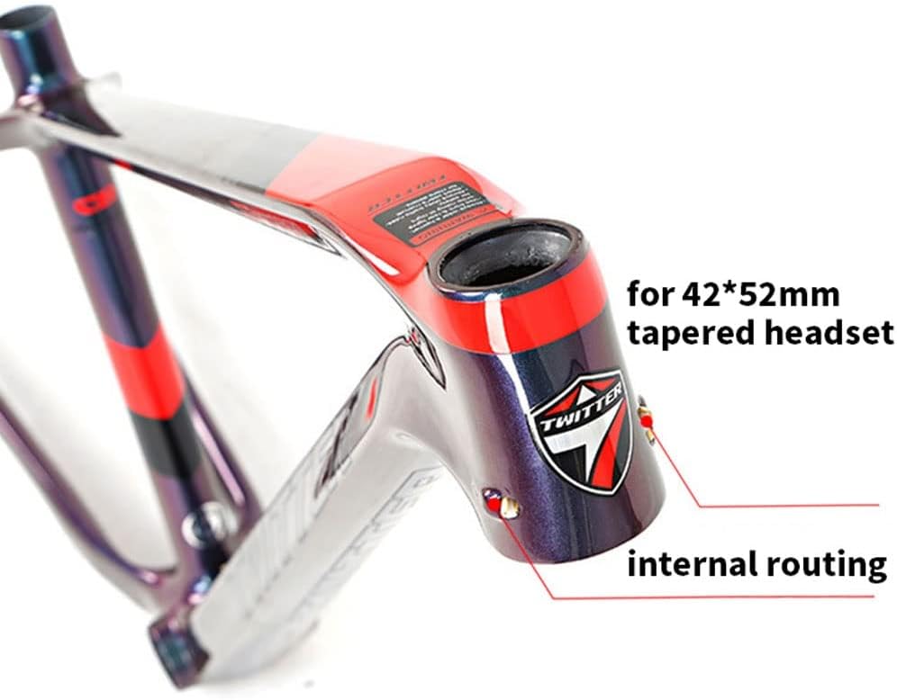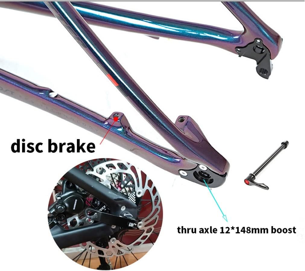 27.5/29er Hardtail Mountain Bike Frame 15''/17''/19'' Carbon Fiber bike Frame Thru Axle 12x148mm Boost Disc Brake Frame Internal Routing XC Name : Carbon fiber bike bike frameFeatures : EPS technology,DiscolorationFrame Size: 15''/17''/19''for wheel:27.5er/29erBrake: disc brake Rear Axle Spacing: thru axle 12*148mm boostFit for Tire:max for 2.25'' TiresCable : internal routingLevel: XC, AMseat post :31.6mmseat clamp :34.9mmHeadset:42*52mm tapered headsetBottom Bracket:BB92 press-in bottom bracketWeight: about 1150g Package Contents: Frame + Tail hook + thru axle leverNote: Please check if the size of bike frame is correct before purchasing.Service:If you have any product and service problems, please contact us and we will reply with you within 24 hours.