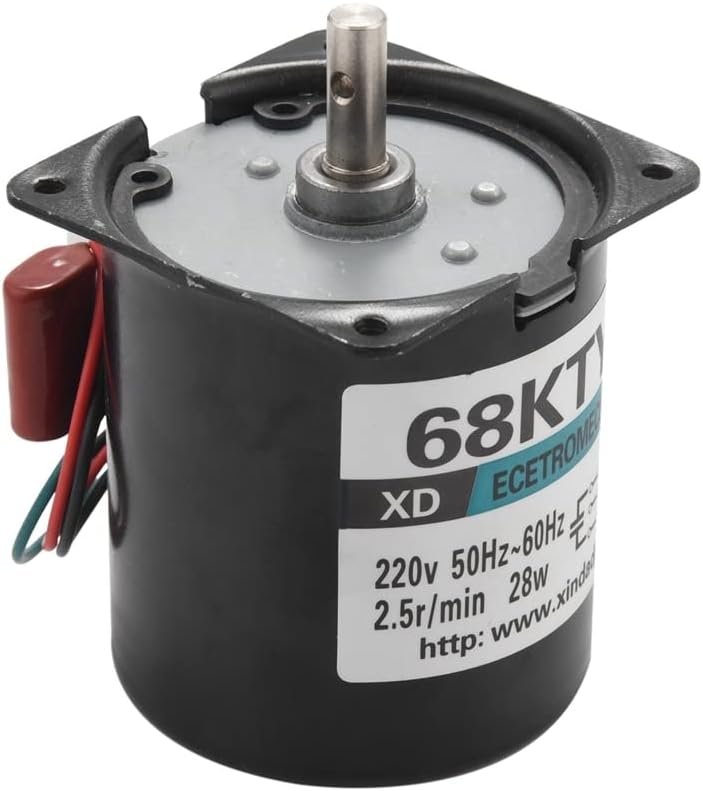 Small volume but large torqueMotor gets constant under the rated frequency, not affected by voltageWith pure copper wire production, metal gear, constant speed68KTYZVoltage: AC220VFrenquency: 50Hz-60HzCurrent: 0.5APower: 28WSpeed: 2.5RPM/MinMotor Dimension: 60mm x 68mmShaft Type: D-Type (Edge Milling: 0.5MM)Output Shaft Diameter: 7MMOutput Shaft Length: 19mmcolour:blackMaterial:metalPackage includes:2 x Synchronous MotorOnly the above package content, other products are not included.Note: Light shooting and different displays may cause the color of the item in the picture a little different from the real thing. The measurement allowed error is +/- 1-3cm.About update: Ifyour is no logistics information, as thousands of parcels sent to foreign countries, logistics companies did not update logistics information, please the first time, Please kindly do not directly open the dispute. We are the first time for you to solve!Time of Item specifics:Certification: NONEOrigin: Mainland China