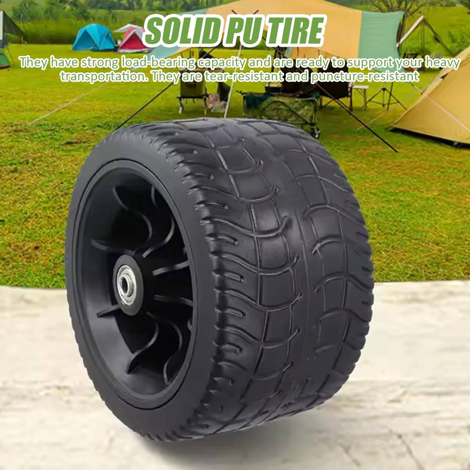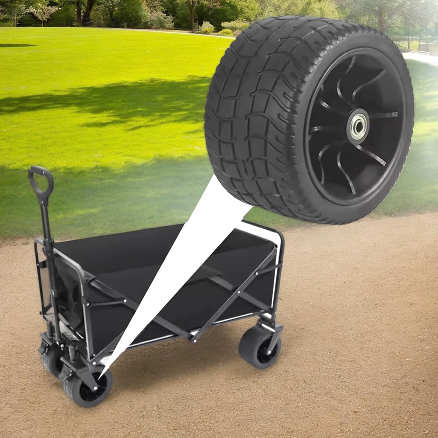 Description: 2Pcs Beach Wheels for Wagon 7inch Non Slip Wagon Wheel Wear Resistant & Heat Resistant for Sand Camping Sports Outdoor feature wide tires designed specifically for smooth movement on sandy and rough terrains, providing excellent traction and preventing slips during beach or outdoor activities, these wheels resist heat build-up and wear even under heavy loads, are easy to install on most standard wagons and carts, and versatile use the beach including camping and sports, enhancing your wagon's mobility and reliability in various outdoor environments. Features:. -Color: Black. -Material: EVA, Polypropylene. -Size: 17.8cm/7inch. Note:Manual measurement, please allow slight errors on size.The colors may exist slight difference due to different screens. Package Including 2 * Beach Wheels for Wagon