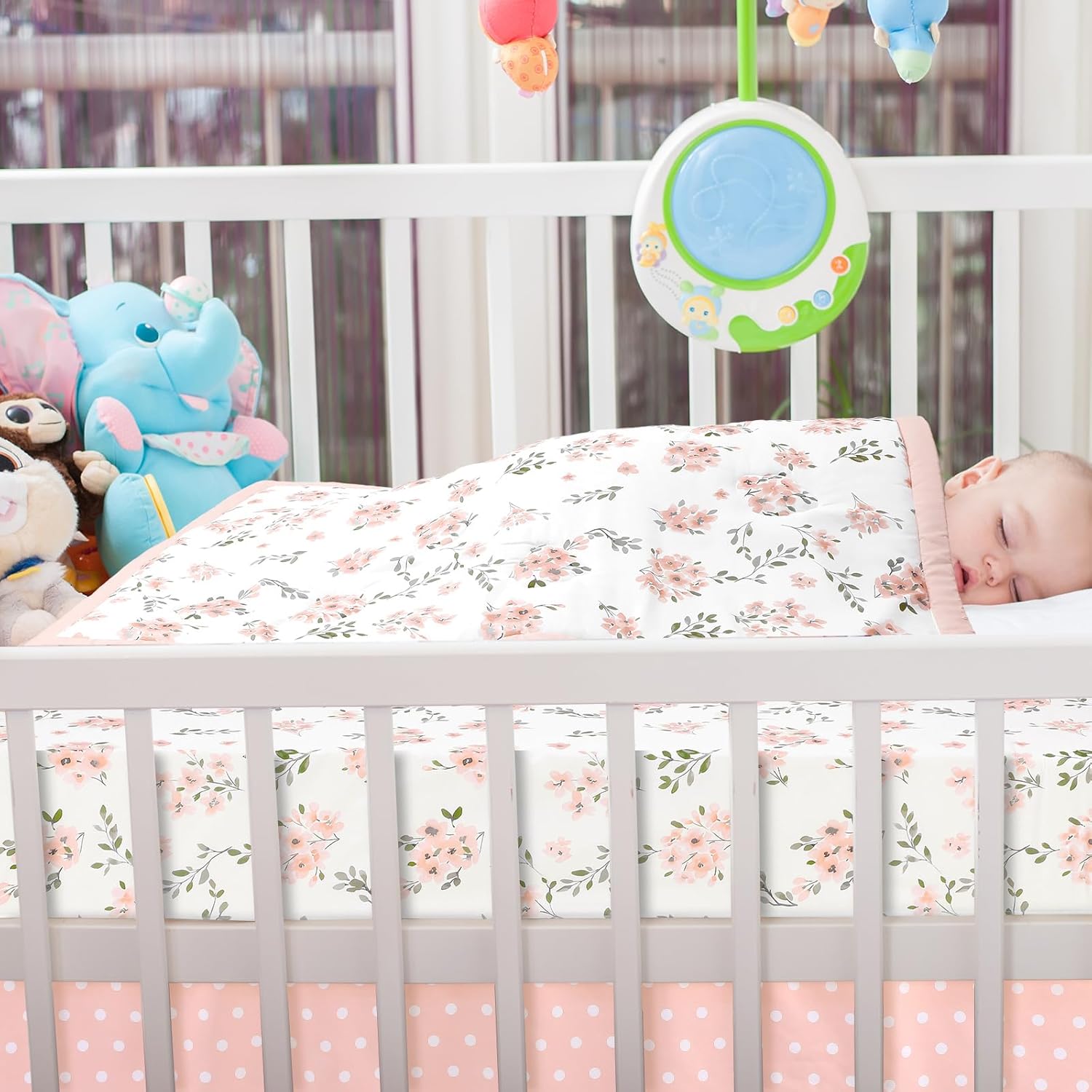 Feature: Warm gift: Our pink baby bedding sets are suitable for baby girls, and can be a warm gift for babies at baby showers, baby registries, baby birthdays and other occasions. Complete crib set: Use our nursery crib bedding set to enhance your baby's bedroom decoration, create a dreamy and happy little space for your baby, create a harmonious nursery atmosphere, and let your baby sleep peacefully. Specifications: Material: polyester Color: pink, white, green, etc. Size: Crib quilt: 32 x 41 inches/ 81 x 104 cm( WxL) Crib fitted sheet: 28 x 52 inches/ 71 x 132 cm(WxL) Crib skirt: 28 x 52 inches/ 71 x 132 cm( WxL) Crib Skirt Drop: 14 inches/ 35.5 cm Package includes: 1 x Crib quilt 1 x Crib fitted sheet 1 x Crib skirt Warm notes: Manual measurement, there may be slight differences in size. Due to the screen display, the color of the item may differ slightly from the picture