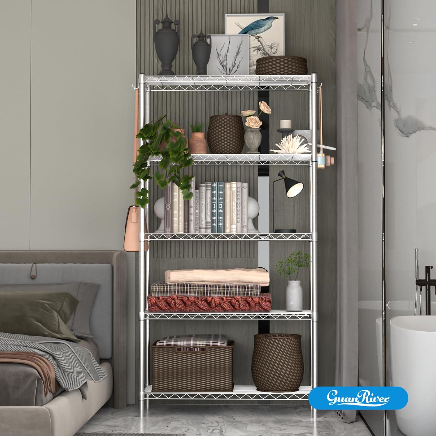 | Recommended Uses For Product | Storage + Organization Wire Shelving to store heavy,bulky,light or small items;Storage Shelves:Tools,Equipment and Boxes,Gym Equipment;Room Storage:Toys,Games and Decorations;Storage Shelves:Storage Boxes,Garage item,Sundries,Clothing,Shoes and Household items;Garage Organizer: Crafting supplies,kitchen appliances and office supplies;Bathroom Organizers:Towels,Toiletries and Cleaning supplies;Wire Shelves:Kitchen utensils,books and Decorative items;Metal Rack:Heavy tools,equipment and machinery;Storage for clothes:Clothing,shoes and accessories;Shelf Storage:Books,files and office supplies;Kitchen Storage Shelves:Dishes food containers and cooking utensils. |
