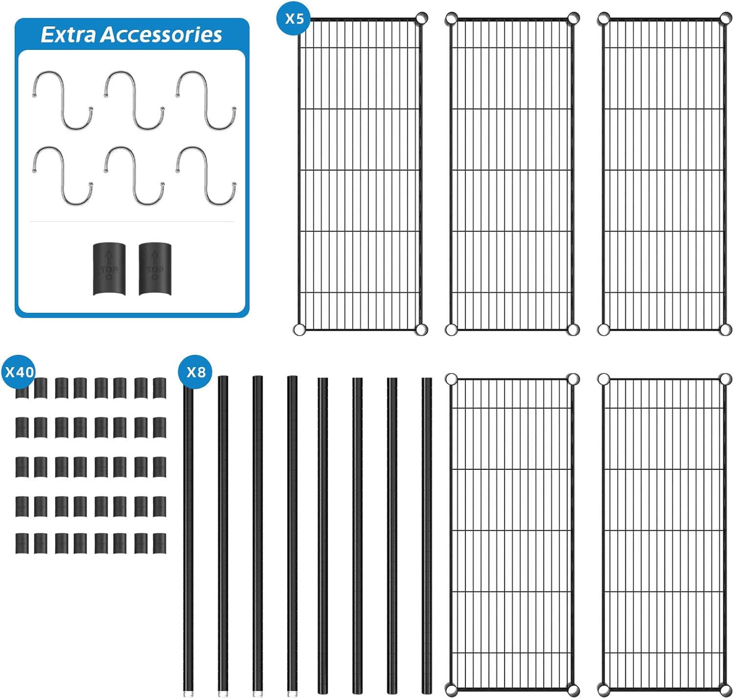 | Included Components | Assembly Instructions,3 pcs Metal Mesh Board,4 pcs Pole,24 pcs Clip;Additionally, 2 pcs Clip and 6 pcs Metal Hooks will be given as gifts |