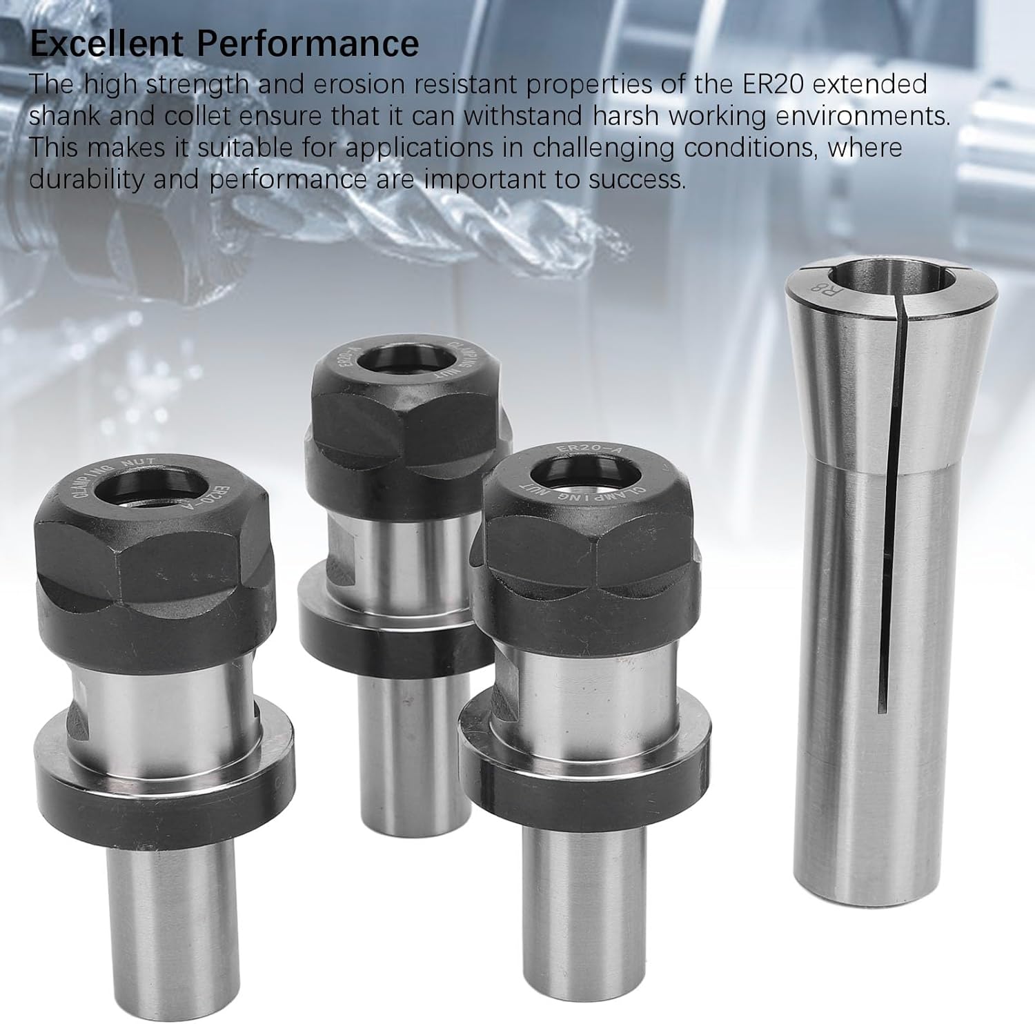 1. Rugged Construction: The ER20 extended shank and collet are made fromexcellent alloy steel, which ensures exceptional strength and durability. This robust construction makes the tool highly stable for demanding cutting applications, providing consistent performance. 2. Standardized Nut Design: This ER20 extended shank adheres to international standards, utilizing the ER20 nut to securely lock the ER20 collet in place. With a clamping range of 1-13mm and a bore diameter of 3/4 inch, this design allows for versatile use with a variety of tools, making it a good choice for accurate work. 3. Broad Applicability: The ER20 extended shank and spring collet are designed for extensive use in various cutting and machining processes. It is suitable for use with engraving machines, milling machines, and other equipment, making it an essential tool across multiple industries. 4. Excellent Performance: The high strength and erosion properties of the ER20 extended shank and collet ensure that it can withstand harsh working environments. This makes it suitable for applications in challenging conditions, where durability and performance are important to success. 5. Compact And Practical: This extended rod and collet chuck are designed with practicality in mind. Its compact size makes it easy to store and transport, while its multifunctional capabilities enhance its utility in various projects. Whether for professional use or handcraft applications, this tool offers convenience without compromising performance. Spec: Item Type: Spring Collet and Collet Chuck Material: Alloy Steel Application: Engraving Machine, Carving Machine Clamping Range: Approx. 1-13mm / 0.04-0.51in Diameter: Approx. 3/4in / 1.91cm How to Use: Take out the product for direct use. Package List: 1 x Collet 3 x s 4 x Storage Boxes