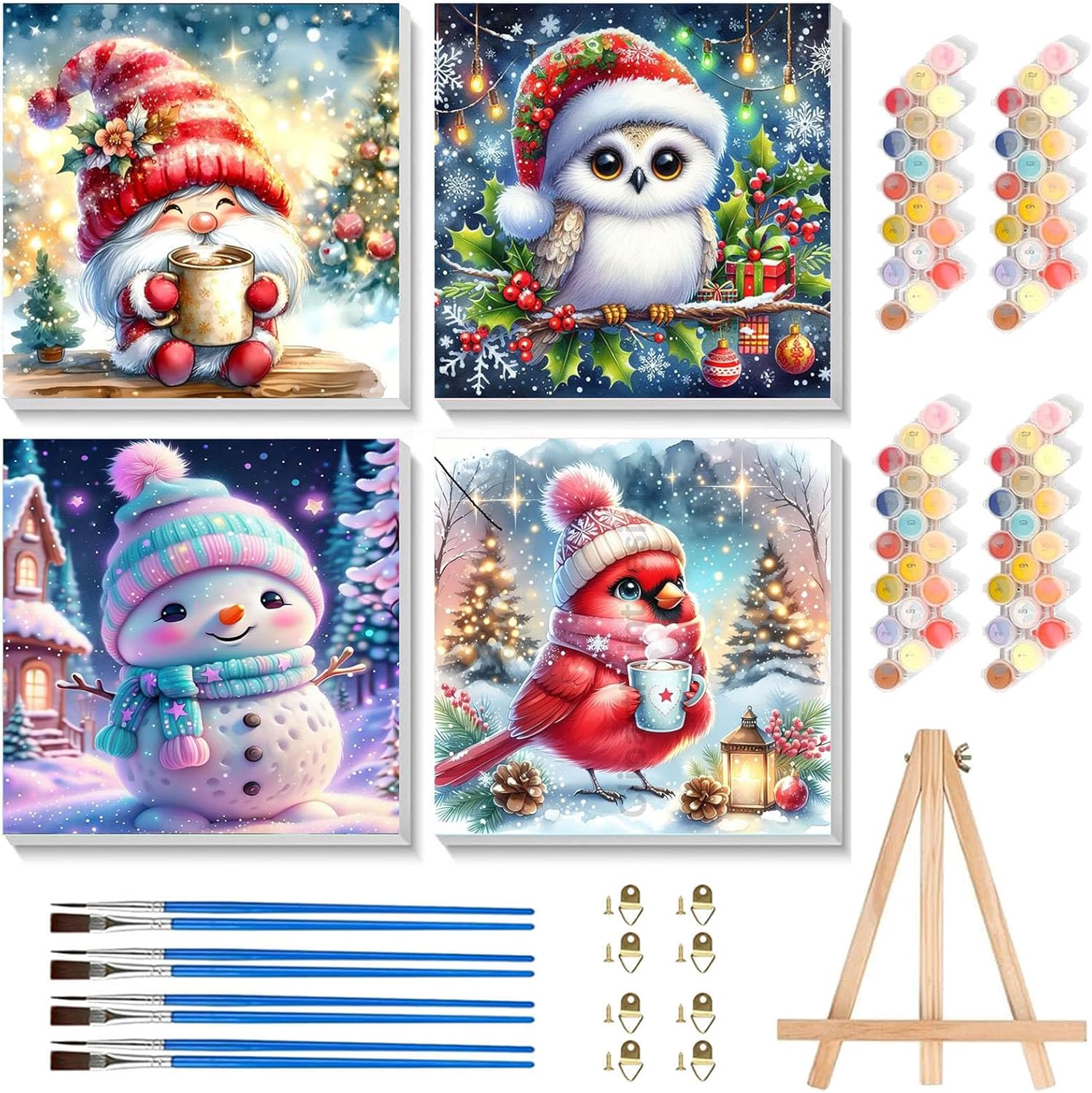 | Included Components | 4 pre-printed canvas, 4 wooden frame, 4 set of acrylic paint, 8 high-quality brushes, 4 wall hanging kit, 4 color postcard guide, 4 paper copy of numbered canvas for reference |