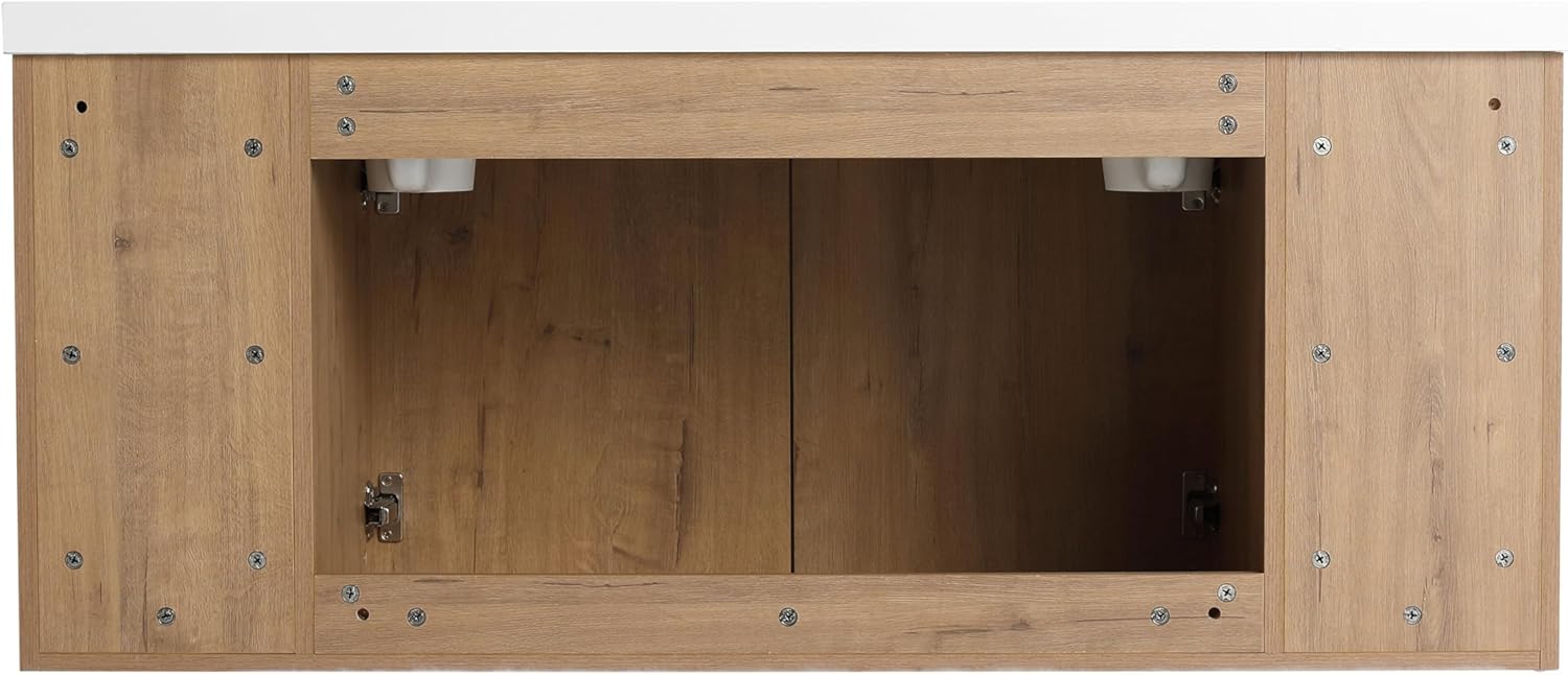 | Additional Features | Double Resin Sink, Durable Material: Eco-Friendly Plywood with Scratch & Water-Resistant Melamine, Soft Closing Door & Handle-Free Design, Wall Mounted Design with Open and Concealed Storage Compartments |