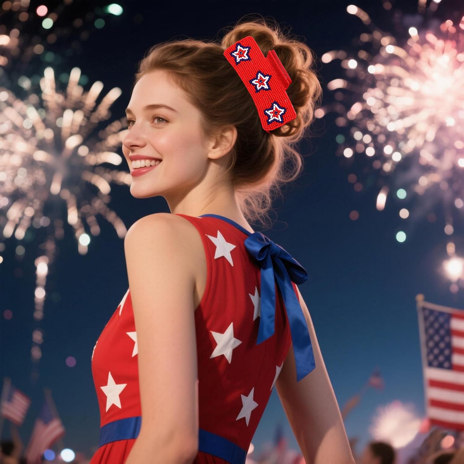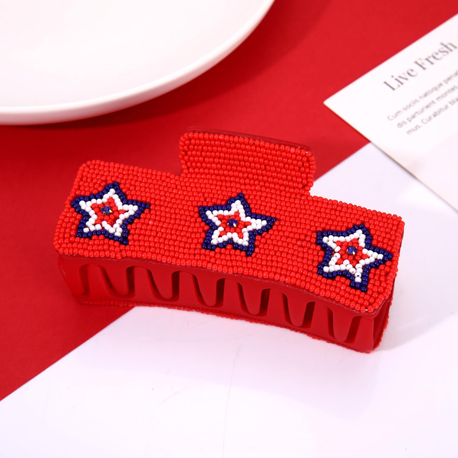 4th of July Hair Claw Clips for Women - Prefect Accessory To Match Your Seasonal Motifs for Women Handcrafted Red White and Blue Beaded Hair Clips: Material: Alloy, Beads, Acrylic. Color: Red, Blue, White, etc. Package Includes: 1 x 4th of July Hair Claw. SATISFACTION PURCHASE -- If there are any problems, please do not hesitate to contact us and we will try our best to solve the problem until you are satisfied.