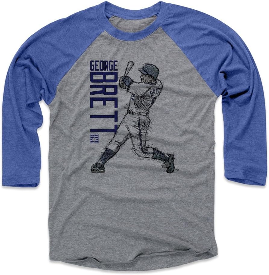 This George Brett 3/4 Sleeve Raglan T-Shirt is the perfect addition to any Baseball fan's shirt rotation!About: This Adult Unisex Triblend Baseball T-Shirt is the perfect garment that bridges the weather between the Summer and Fall months! Versatility for a fall cookout or enjoying an evening baseball game at the ballpark, this extremely soft triblend 3/4 raglan sleeve t-shirt is made up of 50% Polyester, 25% Cotton, 25% Rayon, making it our most comfortable t-shirt style that our customers absolutely love! Fit: Unisex Sizing - Men fit true to size, we suggest Women to size down Care: Machine wash cold, tumble dry lowWhy Buy a 500 LEVEL 3/4 Sleeve Raglan T-Shirt?At 500 LEVEL, we love everything about sports: the tailgating, our favorite teams, players, the huge upsets, and the epic moments. Most of all though, we love an awesome fan t-shirt! As art junkies, we always were looking for something more unique than jerseys or cookie-cutter t-shirts. With that in mind, 500 LEVEL was born! The soft, vintage feel of our unique graphic tees, hoodies, and kids shirts are perfect to wear while you watch the Big Game, on grill duty at 4th of July BBQ's and Tailgates, or as Birthday and Christmas presents! It's our mission to send you a shirt that will be at the top of your tee rotation after every wash!