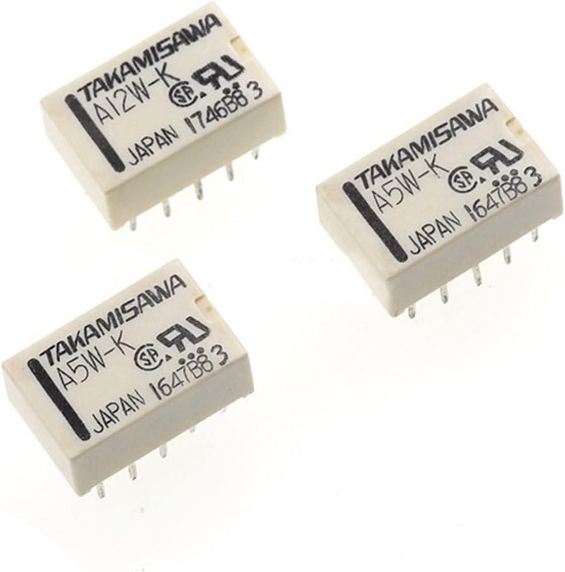 relayType: signal relaySeries A: Series AModel: a5w-kOverall dimension (mm): 14.0 × 9.0 × 5.0 mm (L × w × h)Weight: 1.2gContact parameters:Contact type: 2C (DPDT)Contact load: 1a30vdc, 0.5a125vacImpedance: 50m Rated current: 2AElectrical life: 200000 cyclesMechanical life: 100 million cyclesCoil parameters:Resistance (10%): 178 Coil power consumption: 140MWRated voltage: DC 5VPull in voltage: DC 3.5VRelease voltage: DC 0.5VWorking temperature: - 40 - + 85 Insulation resistance: 1000m Withstand voltage between coil and contact: 1000VAC / 1minWithstand voltage between contacts: 1000VAC / 1min