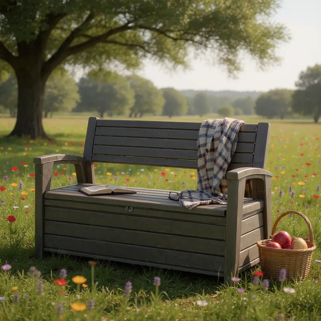 Maximize your outdoor storage space with this versatile 60 Gallon Plastic Resin Outdoor Storage with Sitting . Crafted from durable resin, this multifunctional unit not only provides ample storage capacity (approximately 60 gallons or 227 liters) but also doubles as a comfortable bench with a backrest. The removable seat and folding legs allow for easy access to the storage compartment, while the sleek black design complements any outdoor setting. Whether you need extra storage for gardening tools, pool accessories, or outdoor cushions, this storage bench offers a practical and stylish solution. it's the perfect addition to your patio, deck, or garden area. Enjoy the convenience of having a sturdy bench and spacious storage all in one compact unit.