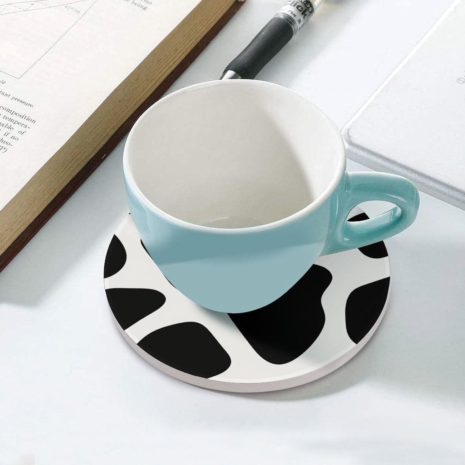 Transform your daily hydration into a stylish and protective ritual with our Cute Ceramic Coasters with Cork BottomDrink Coasters for Home Cup Mats for Table Rustic Coasters Round Coasters Unique Coasters Vintage Coasters Art Teacher Gifts Round Drink Coasters for Hot Cups Funny Coasters Outdoor Coasters for Patio Table Waterproof Bar Coasters Non-Slip Table Coasters Absorbent Coasters Ceramic Car Coasters for Cup Holders Ceramic Cup Holder Coaster for Car Cool Coasters Pretty Coasters White Wine Coasters Housewarming Gifts CoastersSuitable Size:Heat resistant coasters for drinks arr crafted from ceramic and finished with a natural cork base, each coaster is as practical as it is sustainable. The 4.1-inch round size is perfectly proportioned to sit under a variety of glassware - from your favorite coffee mug and ceramic teacup to tall glasses of iced tea or bottles of beer.Double Protection:The heat-resistant ceramic top acts as a shield, guarding your cherished wood tables, kitchen countertops, and office desks against hot beverages, unsightly water rings, and condensation . Meanwhile, the soft, non-slip cork bottom plays a dual role: it prevents the tea coasters from sliding around when you reach for your drink, and it ensures your furniture remains free from scratches and scuffs.Multi Purpose: Whether you're decorating a coffee table in the living room, adding a functional touch to a home office, or setting up a bar cart for entertaining, these decorative coasters are the perfect blend of utility and subtle style.Material: Ceramic & CorkSize: 4.1 inches (Diameter)Care: Wipe clean with a damp cloth.Designed for the modern home, these heat resistant cup mats blend functionality with minimalist aesthetics to keep your surfaces pristine.