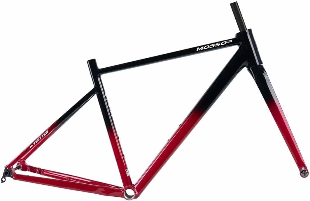 700C road bike frameset, 41cm/44cm/47cm/50cm/53cm Aluminum Alloy disc brake frame, Thru Axle frame F12*100mm R12*142mm, Perfect gift for bike lovers, can be assembled with your friends.Product name: road bike framesetFrame height:41cm/44cm/47cm/50cm/53cmFor wheel:700C wheels MAX Tire: 30CHead tube: 52-52mmSeatpost: 27.2mmSeatpost clamp: 31.8mmBottom Brackets: BB68mm Threaded Bottom BracketThru Axle: F12*100mm R12*142mmBrake: disc brakeCable: Shifter brake internal routingMaterial:7005 Aluminum Alloy frameCarbon fiber forkWeight: Frame: 1490gFork: 420gColor: Black Gray , Black Red , Black WhitePackage: Frame + carbon fibre fork + thru axle lever×2NOTES: Please check if the bike frame size is correct before purchasing.Service: If you have any product and service questions, please contact us and we will respond to you within 24 hours.