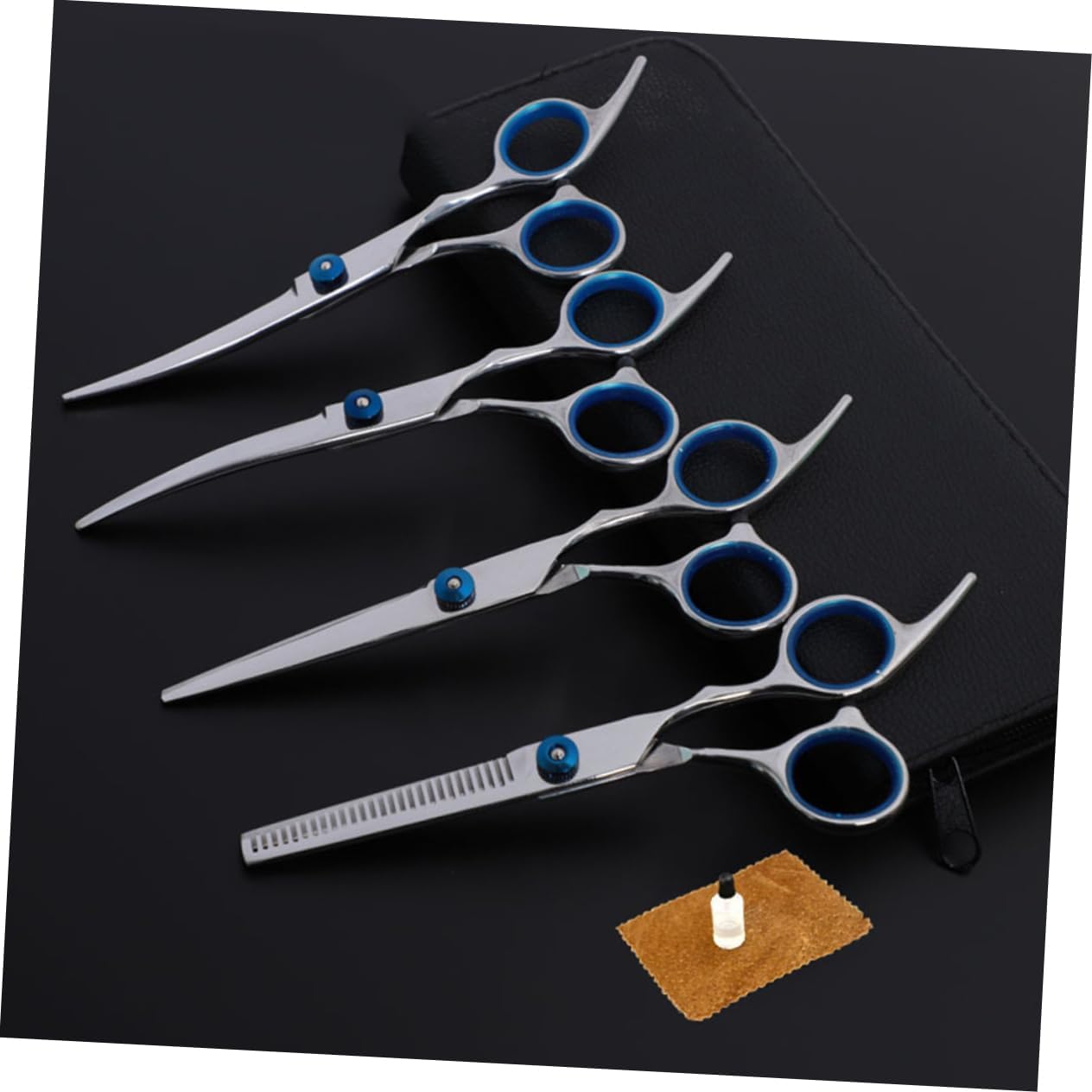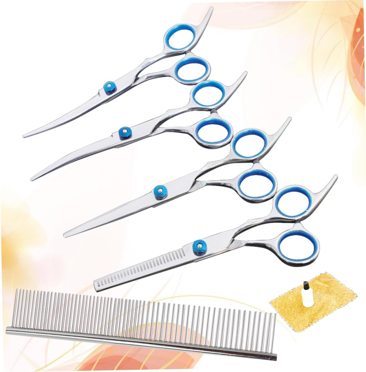 Package List 8pcs of One Set x Pet Hair Scissors Characteristics - Material : Stainless steel Pet Hairdressing Scissors. - Packing Size: About 20 x 15 cm Dog Barber Scissor - Color: Blue. - The scissors are very sharp, not easy to stuck and damage hair Dog Hair Styling Tools. - Made of premium stainless steel, the scissor is and hard to rust Hair Cutter for Pet. - Light weight and portable, easy to carry and storage Teeth Cut Scissor. - Applicable for families, pets dog and cat salon use. - Professional hair shears scissor, for barber salon or home daily use.Goods DescriptionHair Cutter for Pet It's tool for own and you lovely pet hairstyling use.Teeth Cut Scissor If you are one of them, This barber teeth cut scissor will be best .Dog Hair Styling Tools The scissor is made of stainless steel, which is durable enough for lasting use.Dog Barber Scissor people are prefer to cut their bangs or hair end by themselves