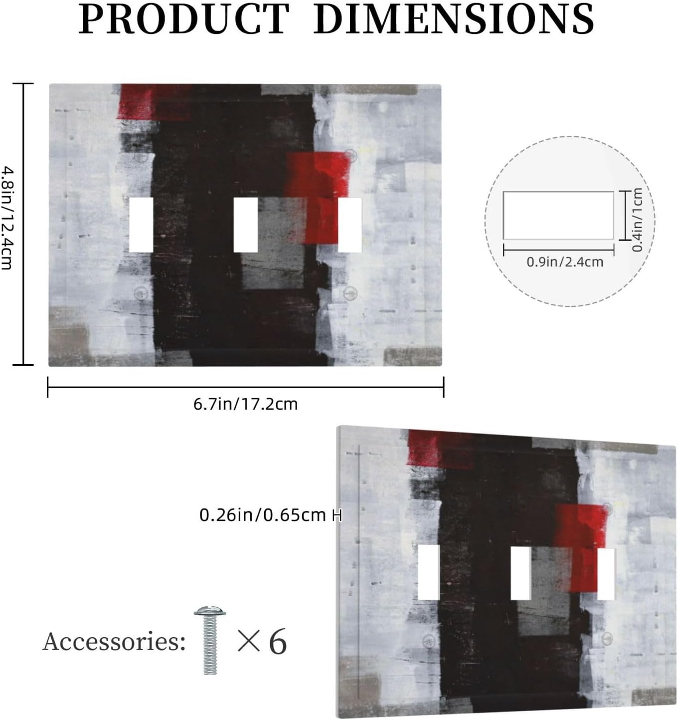 Material: polycarbonate thermoplastic. Unique Modern Art Design: Designed with clear and beautiful printing, which can well decorate and add some different colors to your room. Installation Notes: You have to be super careful with the screws so you can avoid scratching the screws or the faceplate. Leave all screws facing the same way when done for a professional finished look.