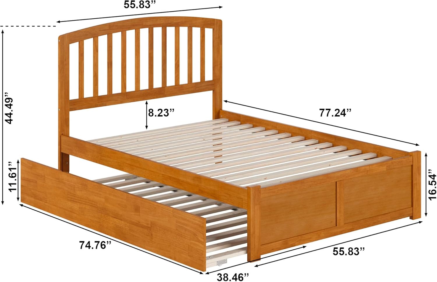 • TWIN TRUNDLE INCLUDED: Rolls out effortlessly from either side and fits a mattress up to 8 inches thick; TRUNDLE DIMENSIONS: 74.76"L x 38.46"W x 11.61"H