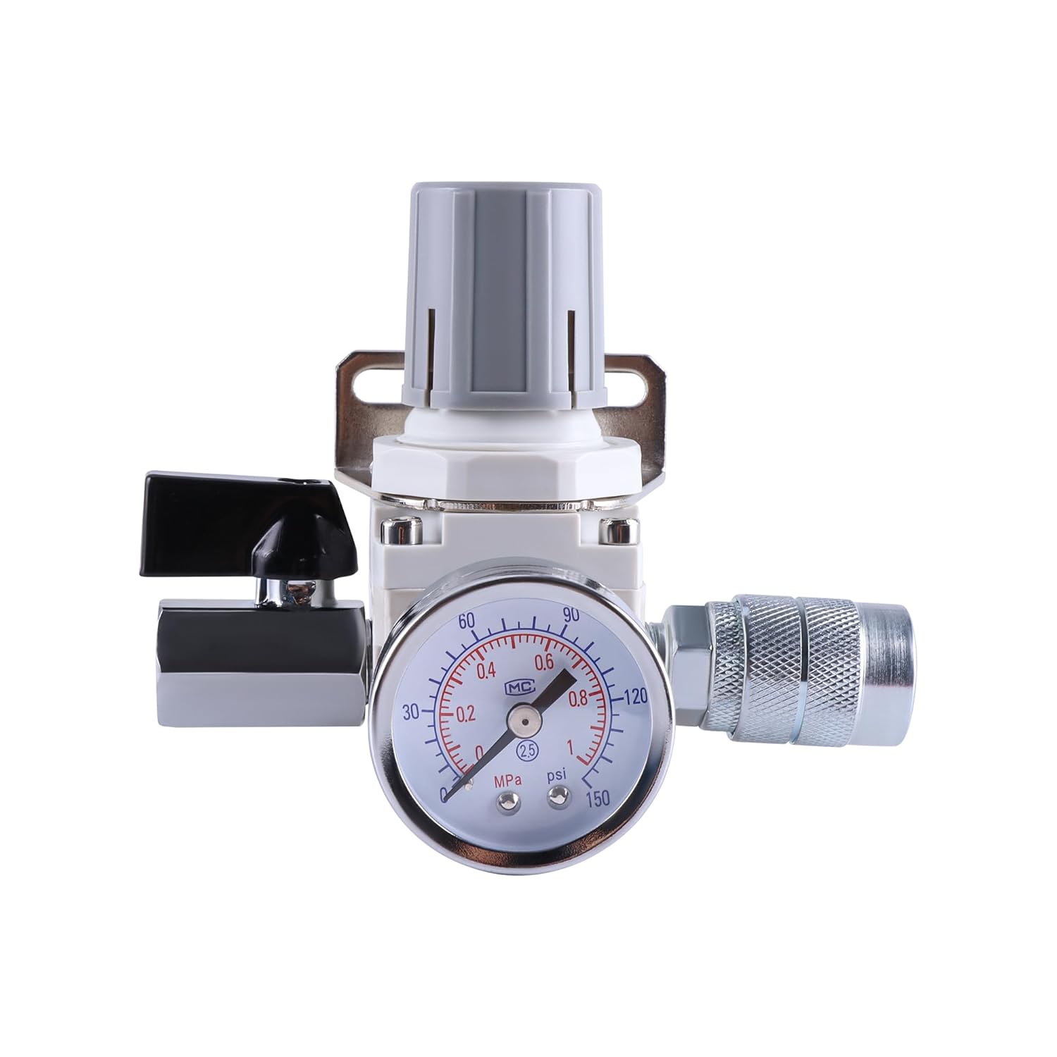 Feature:With pressure gauge for more accurate pressure sensing. You can adjust the knob to set the desired pressure.When regulating pressure, pull up the rotary knob and rotate clockwise to increase the pressure and rotate anticlockwise to decrease the pressure.Specifications:Size: 1/4 inch NPTMax Inlet Pressure: 145 PSIWorking Pressure: 0-125 PSIWorking Temperature: 41-140°F (5-60°C)Flow Rate: 20 SCFM (550 L /Minute) 90 PSIPackage includes:1 set of Air Compressor Pressure Regulator and Accessories