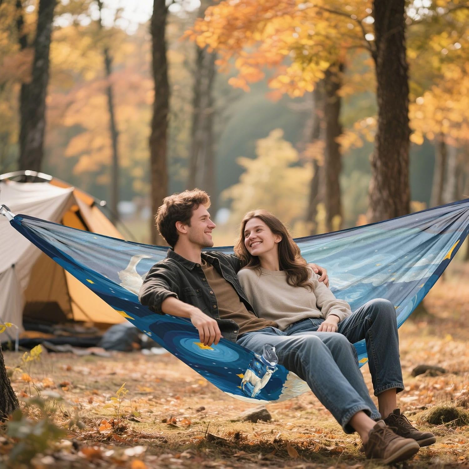 Reliable Outdoor Relaxation This practical hammock delivers comfort and convenience for outdoor enthusiasts using quality materials and thoughtful engineering. Technical Details Material: 100% polyester (210T taffeta body; 600D polyester straps) Hardware: Aluminum carabiners Load Capacity: 500 lbs (227 kg) Packed Size: Approx. 7 x 5 inches (18 x 13 cm) Durable Construction Reinforced triple-stitched seams at stress points Quick-drying material Practical Applications Camping and backpacking Hiking rest breaks Beach and park outings Family relaxation Travel and festivals Package Includes 1. Hammock 2. Straps (2m each) 3. Carabiners 4. Storage sack Designed for Easy Use Sets up in minutes without tools. The balanced design provides stable support, while the breathable fabric prevents overheating during extended use.