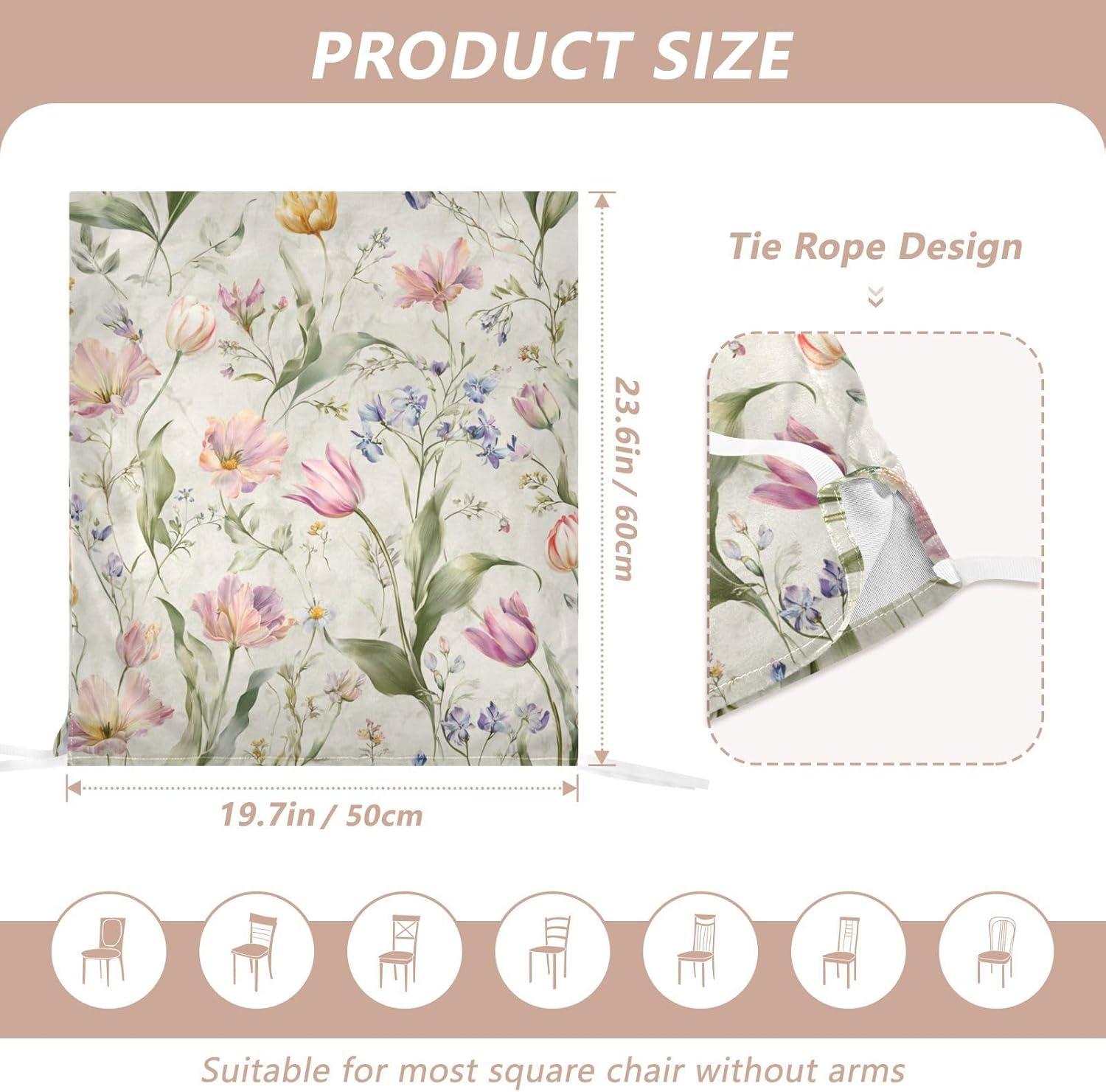 Chair Cover Material made of polyester,comfortable and soft to touch,reusable and suitable for long term use Features easy to install and remove, tie rope design at the bottom,machine washable Stylish Chair Decoration With beautiful pattern,it can be used for family party/ birthday party/wedding/ holiday party to add atmosphere, also can be used for chair decoration in living room, dorm, kitchen dining room,bedroom to bring protection to the chair while avoiding stains to dirty the chair back. Easy To Care Machine washable, Not washing with hot water, Not bleaching