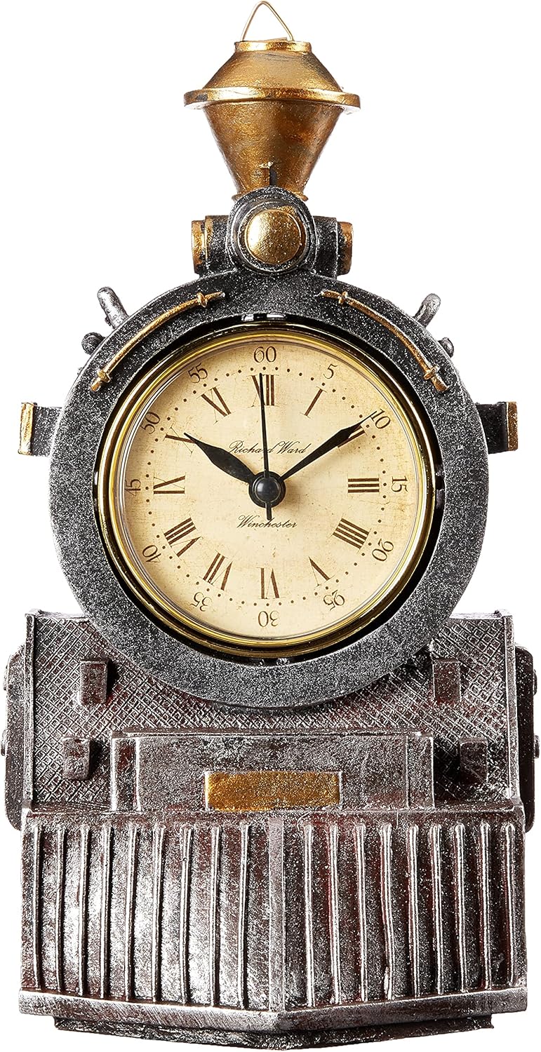 There's no question about a timely arrival with this steam engine wall clock, patterned after the handsome trains that once ruled the rails. Whether hanging in your own station or that of another train lover, this accent piece with quartz movement and sharp Roman numerals makes a unique railway collectible. Cast in quality designer resin, accepts your single AA battery. 5½"Wx3"Dx9½"H. 1 lb.
