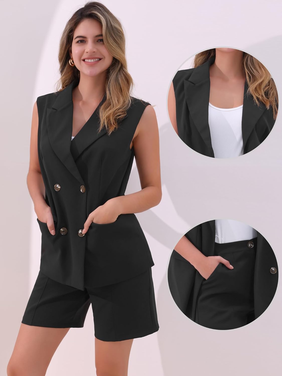 | Pocket Description | Has two flap pockets on the blazer vest and two side pockets on the shorts |