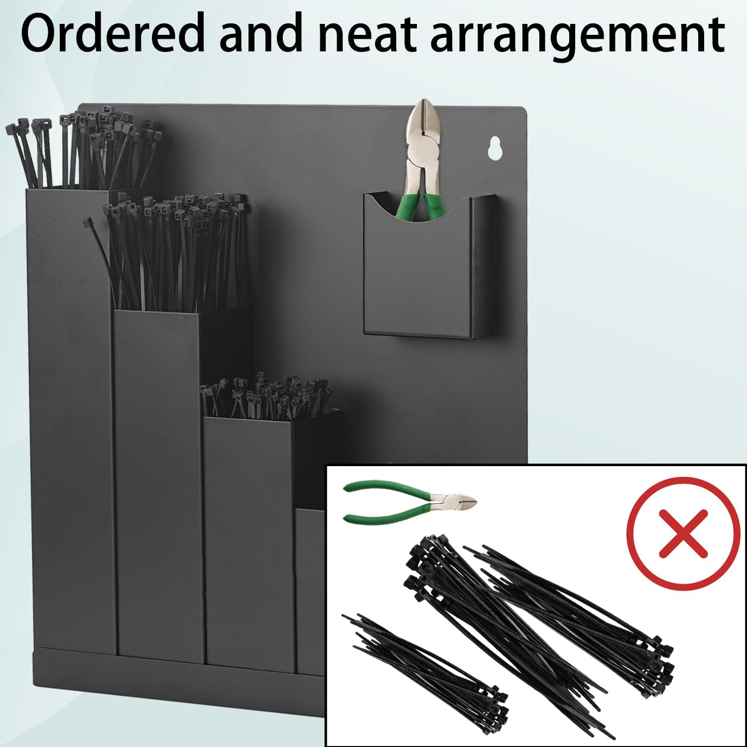 Aluminum Cable Zip Tie Storage Holder Rack – Wall Mount 6-Pocket Zip Tie Organizer for Garage, Shop, Race Trailer