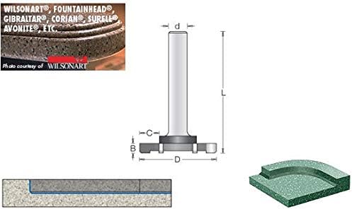 Create extra-smooth shallow recesses in countertops with this 6-Wing tool. The radiused cutting tips produce an edge that's easy on the fingers and simple to clean. Use in a handheld router, #57136, diameter (D): 2-1/16, cutting Height (B): 1/4, shank (d): 1/2, overall length (L): 3-5/16, Wings: 657136 carbide Tipped Countertop Countertop trim 6 Wing solid surface 2-1/16 dia x 1/4 x 1/2 inch Shank