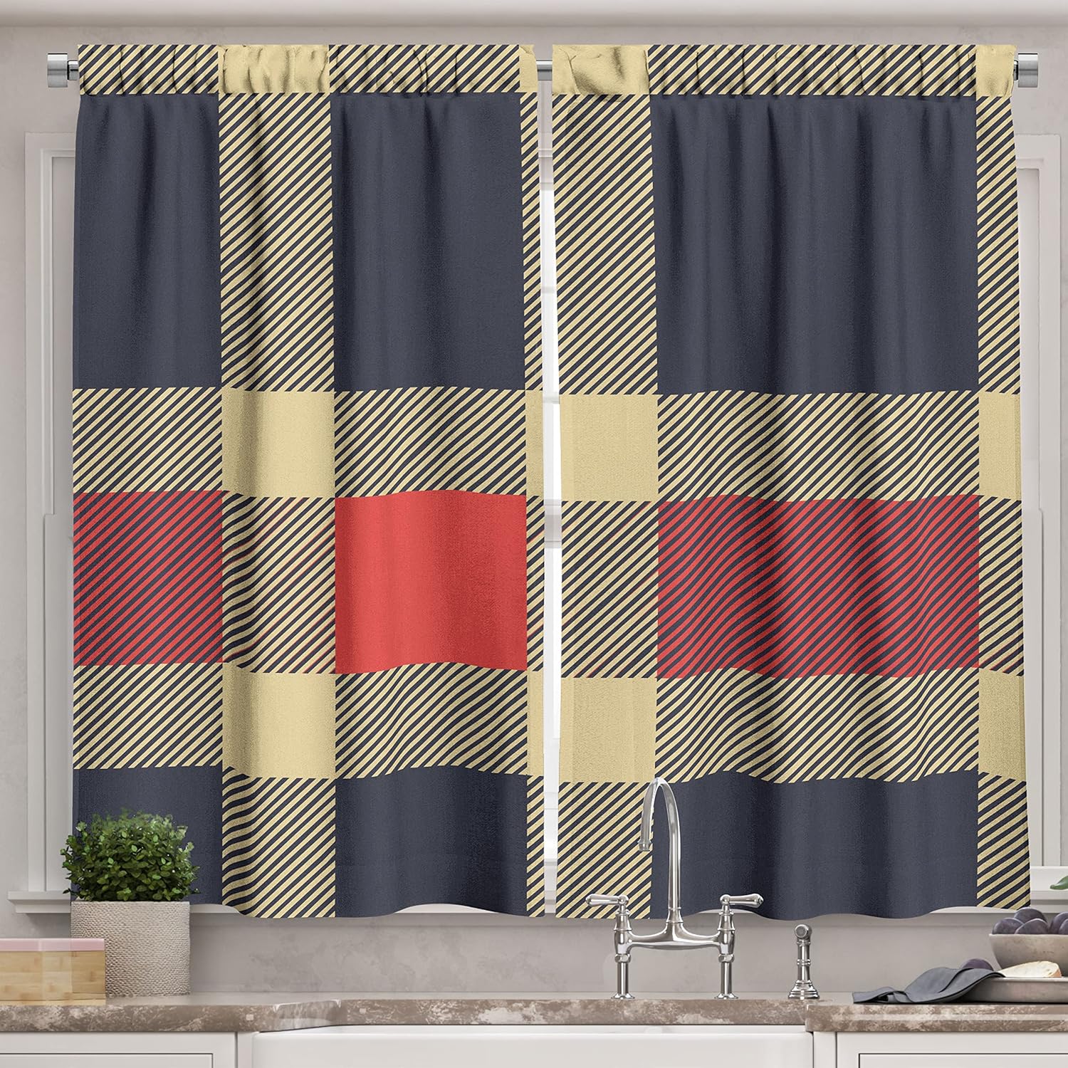 Show off your personality and create a statement with your kitchen decor! Kitchen window curtains serve a variety of functions. They add to the room's visual appeal, increase privacy, and screen natural light. The best technique to keep light from shining off your glass while working in the kitchen is to use drapes that match your decor with good quality. Choose the one that suits your windows with thousands of different color and pattern options. Add more fun with printed window treatments instead of making your home more oppressive and monotonous with plain curtains. The kitchen curtain print transforms your space while still offering the privacy you desire. You can use it as a kitchen curtain, as well as a bathroom curtain for tiny windows or a bedroom curtain. It is possible to create elegance in every part of your home. It maintains the same beauty with its 100% polyester structure. Impactful stitching and a contemporary graphic design distinguish this printed kitchen curtain fabric. Whether used as a dramatic decorative cloth or for beautifying your room, it serves as a multicolored highlight for all of your interior design ideas. You can wash it in a cold delicate cycle and save time. You can have the same elegance in your homes for years. Be stylish, and reflect your character with your curtains!Due to manual measurement, please kindly allow 1-2 cm discrepancy. The digital images we display have the most accurate color possible, however due to differences in computer monitors, we cannot be responsible for variations in color between the actual product and your screen. No hardware is included.