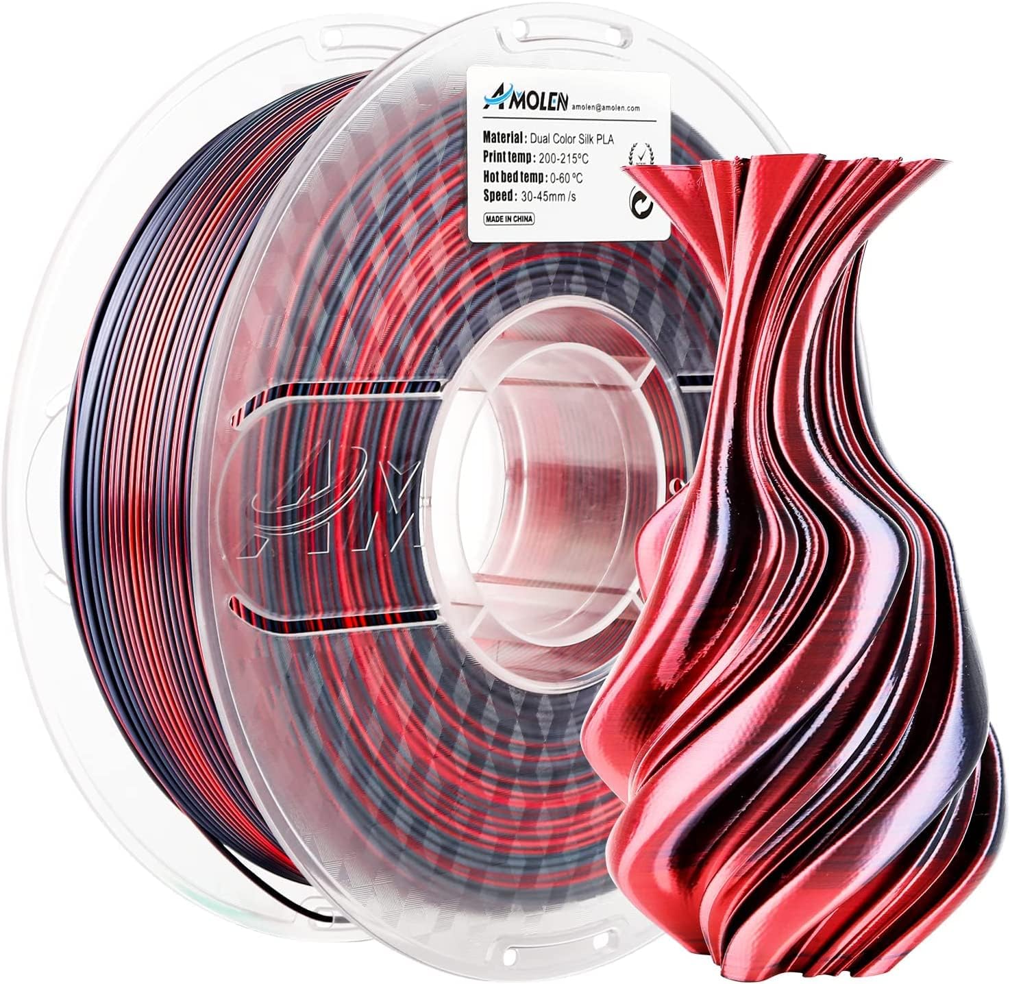 AMOLEN 3D Printer Filament, PLA Filament 1.75mm Dual Color Filament, Silk Red Black & Silk Grey PLA