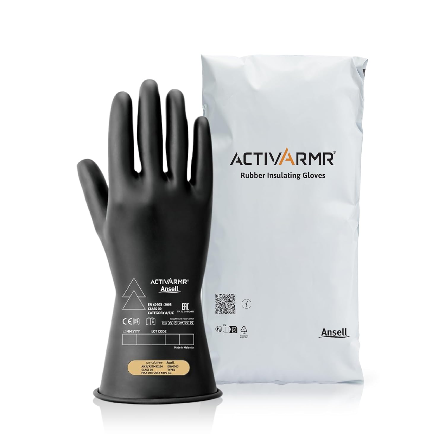 These ActivArmr ultra-lightweight electrical insulating gloves provide game-changing electrical protection with a 30% thinner design than standard electrical gloves. Our rubber gloves help reduce fatigue while offering high dexterity and advanced tactile sensitivity for handling small parts, making them ideal for a variety of industries like automotive, electrical, EV battery manufacturing, electric vehicles manufacturing, construction, first responders, utilities, janitorial, and sanitation. These electrical gloves are silicone free to prevent contaminant transfer to final product. As electrical PPE, the safety gloves are arc flash certified (APC 1) to withstand a touch voltage AC maximum of 500V (DC maximum 750). In addition, they are certified for resistance to acid (Category A), Ozone (Category Z) and very low temperatures (Category C). Available sizes: 7, 8, 9, 10, and 11; Cuff Style: Straight; Length: 280 mm/11 inches. Applications: Energized equipment, electrical contractors, electrical and hybrid vehicle manufacturing, maintenance, EV battery manufacturing, and telecom.
