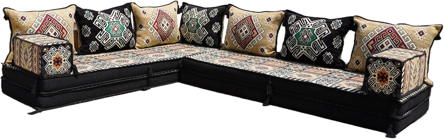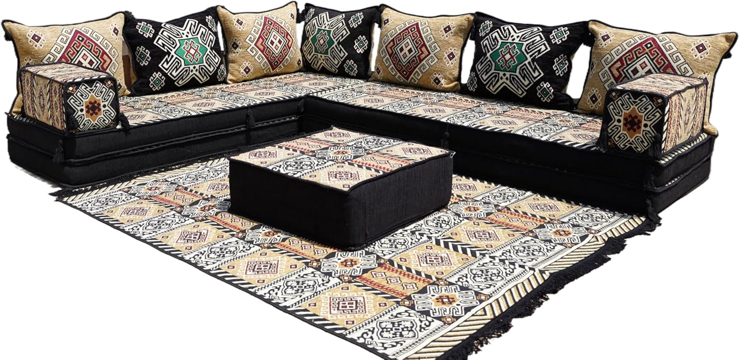 | Included Components | Floor Seating Cushions, Backrest Pillows, Armrest Pillows, Matching Rug, Ottoman Couch, Pouf Pillows |