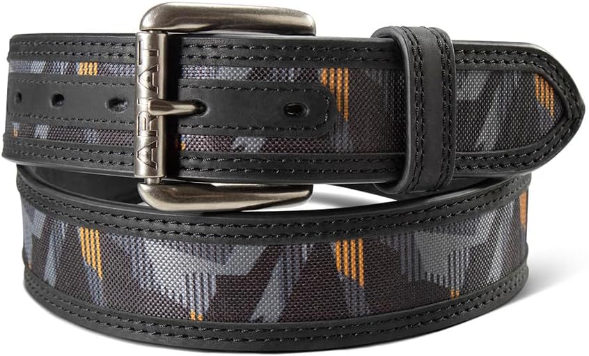 Crafted for longevity and style, this camouflage work belt is designed to withstand your toughest workdays. It boasts a robust square buckle with the ARIAT logo, offering both functionality and a striking appearance. The double-row stitched edges enhance durability, while the leather and camo print give it an outdoors-ready look. Whether you're at work or in the field, this belt is ready for action. When selecting a size, please take your pant size and choose one size up. For instance, if you wear a size 34 in pants, opt for a size 36 belt.