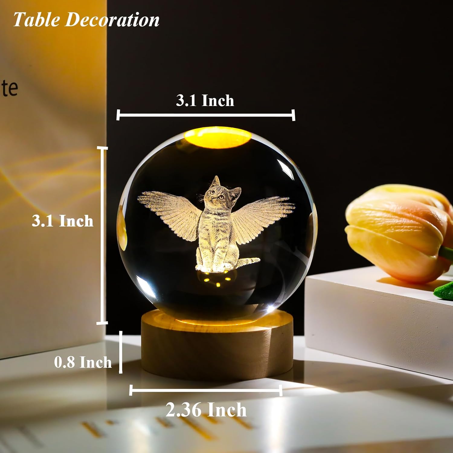 3D Cat Crystal Ball 3D Flower Angel Cat Figurines with Night Light Cat Lover Gifts for Girl Women Cat Collectibles Home Decor Cat Lamp for Bedroom Unique Cat Gifts for Her Mom BirthdayLooking For a Unique and Delightful Gift for the one Who Love Cat? Look No Further! This 3D Cat Butterflies crystal ball is a unisex gifts. It can be a gift to your girlfriend, boyfriedn, wife, husband, friend, son, daughter, sister, brother, parents or your chirldren and anyone you love. It can be gifting on any ocassion, such as birthday, Christmas, New Year, Valentine's day, mother's day, father's day, chirldren's day and so onProduct Specification:Material:K9 CrystalCrystal Size:80*80*80mm (3.15*3.15*3.15in)Crystal Weight:0.52kg (1.15 Lbs)Color Material Of Led Lighting Base:WoodenBase Size:68*68*28mm (2.68*2.68*1.1in)Base Weight:0.7kg (1.54lb) Box Size: 205*110*85mm(8.07*4.33*3.35in)Total Weight: 0.95kg(2.11lb)Package Include:1 X 3d Laser Engraved Crystal Ball1 X Led Base 1 X Data Cable1 X Cardboard Gift Box