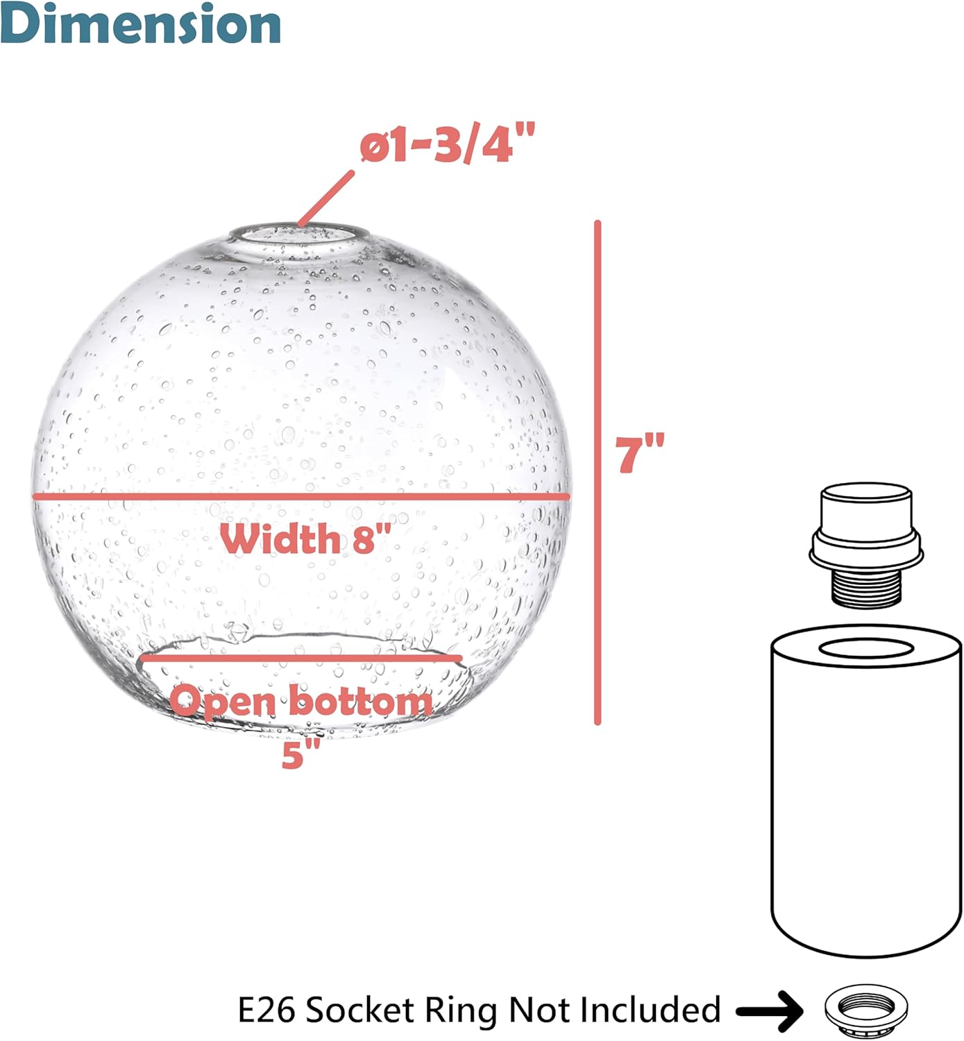 Aspen Creative Item #28011-61-1Aspen Creative offers a one pack globe shaped glass shades that will enhance your fixtures. This shade is designed with a 1-3/4 inch fitter and measures, 5 inches bottom, 7 inches height, and 8 inches total diameter. With its easy installation, altering the appearance of your light fixtures and regular maintenance will be effortless. Our replacement glass shades are made from high-quality glass and are heat resistant, guaranteeing durability and stability. It also offers an original appearance of light without it being overwhelming while having a transitional craftsmanship.Designed for easy installation; our lightweight yet durable glass construction ensures a hassle-free replacement process. The common fitter size makes these globes compatible with most lamp post, wall scone, and pendant fixtures. Aspen Creative is dedicated to offering a wide assortment of attractive and well-priced lighting products such as portable lamps, kitchen pendants, vanity wall fixtures, outdoor lighting fixtures, lamp shades, and lamp accessories.