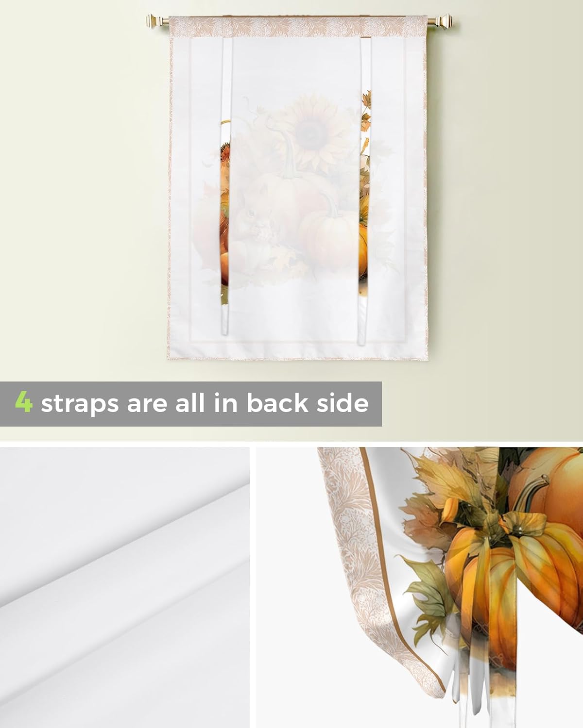 Liven up any small window with this curtain panel, providing just enough privacy, window covering, for your everyday needs.You can tie the functional straps at different heights for an eye-catching look. Impress your friends and family with these window treatments.Innovative Door Window DecorElegant bathroom curtains bows tie up shade is upgraded from normal style, 4 adjustable straps are on the back, it can be tied to create a pleated effect, or can be tied to block some sunlight, it will decorate your indoor windows and rooms with a new great effect.Suitable for Halloween, Thanksgiving, Christmas, New Year, etc., dress up this tie-up curtain. Add your personalized and customized holiday atmosphere.Tieup Shades Drape DetailsDimension34x45in about 86x115cm42x45in about 107x115cm42x54in about 107x137cm42x63in about 107x160cm46x63in about 117x160cm52x45in about 135x115cm52x63in about 135x160cmWe did manual measurement, there may be 1-3cm error. Hope to get your understanding.Please measure the size of the window before buying to make sure the adjustable balloon rod pocket curtain are the right size.CraftsmanshipCareful stitching prevents loose threads and puckered hem.Machine washable in cold gentle cycle, tumble dry low, do not bleach.Easy InstallationSewn with 4" rod pockets, perfectly accommodates 2" diameter curtain rods.Frequently Asked Questions Are Listed Below:Q: How do you tie them up?A:The decoration steps are as described in the pictures. Due to lighting effects, monitor brightness and other factors, the color tone of the website photos and the actual product may be slightly different.Q: Is the curtain privacy strong enough?A:If you take this tie down curtain all the way down, it is enough to protect your privacy. But not completely blackout. There will be light filtering.