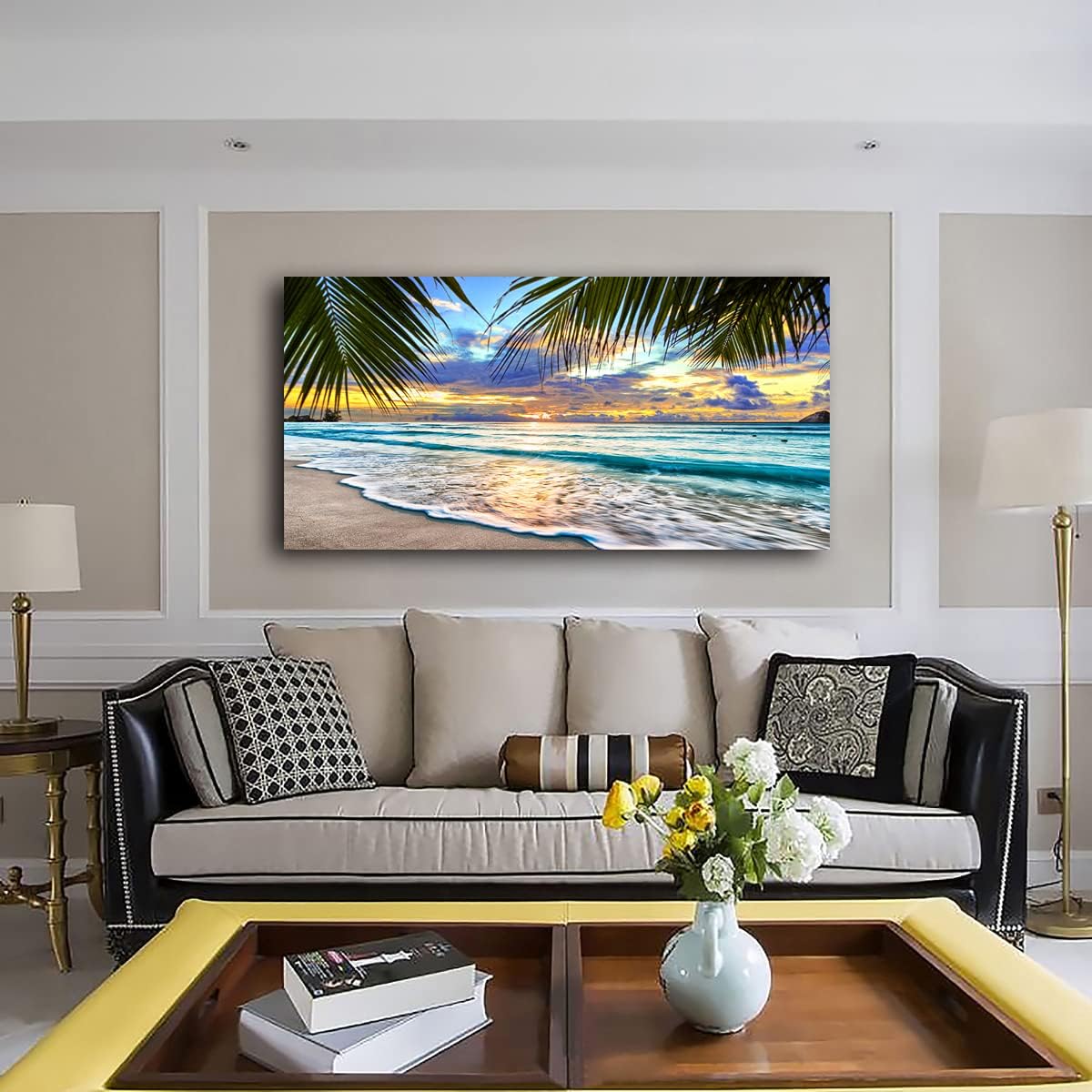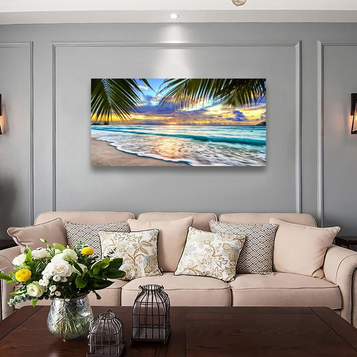 | Color | Blue Ocean White Wave Green Palm Tree |