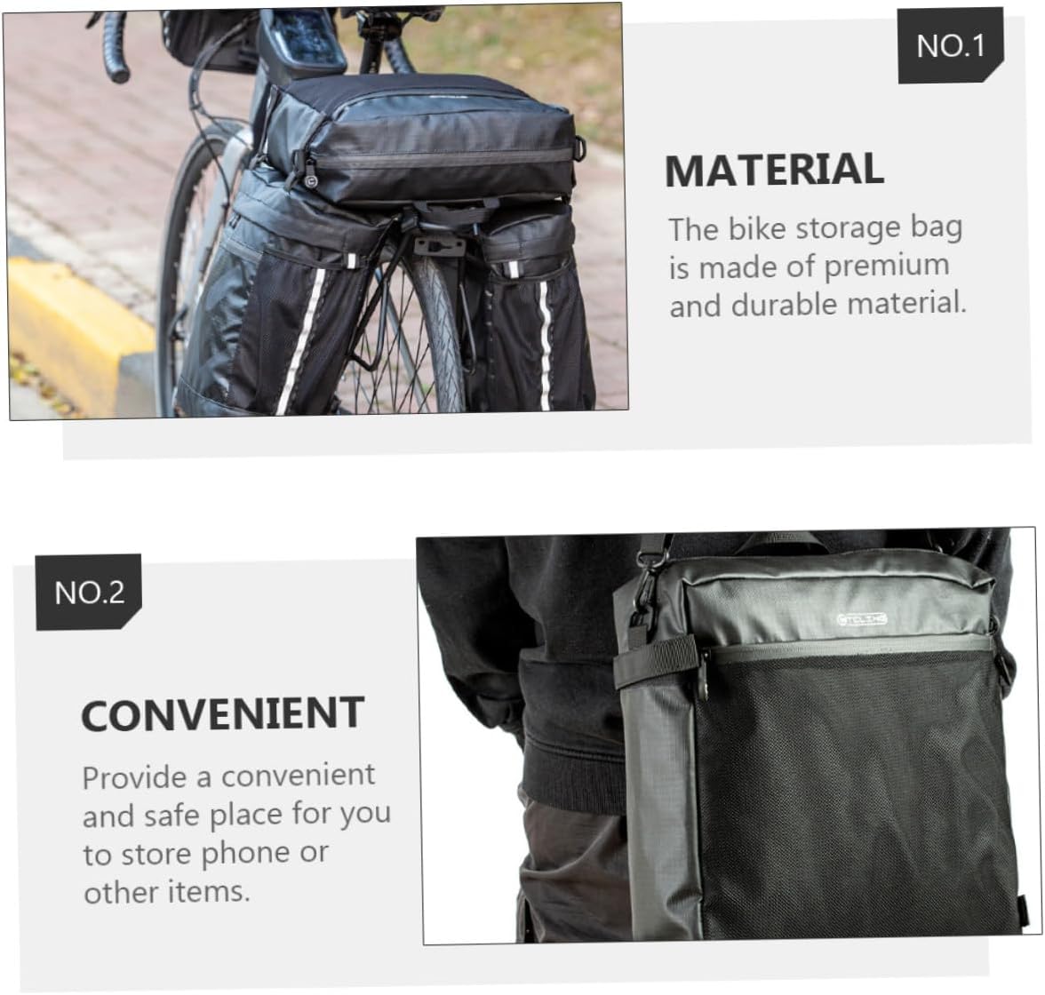 Package List 1 x Bicycles Rear Shelf Bag Characteristics - Capacity: 50L Bike Carry Bag. -Product Info:Waterproof travel bag - Material: EVA. - Size: About 33.00X33.00X14.00cm/ 12.97X12.97X5.50inch. - Color: Black. - Designed with reflective, can be easily seen in the dark, safe for your riding at the night Bike Travel Bag. - The product designed for convenience for short trips and long-distance journeys Rear Seat Shelf Bag. - The design helps to store items and provides ample storage space for items you need for cycling Rear Bicycles Bag. - It comes with the simple structure, provides convenience to install and remove Bike 3-in- Carry Bag. - A great gift for your friends and families who are cycling lover, they will love this practical bike bag Bike Pannier Bag.Goods InformationMountain Bike Carry Bag This is a great bag and doesn't get in the way when you're riding.Bike Carry Bag The bag has the proper amount of compartments to keep everything organized.Carry can be removed from the bike and install easily.Bike 3-in- Carry Bag This bike rear seat bag is designed for moderately long rides