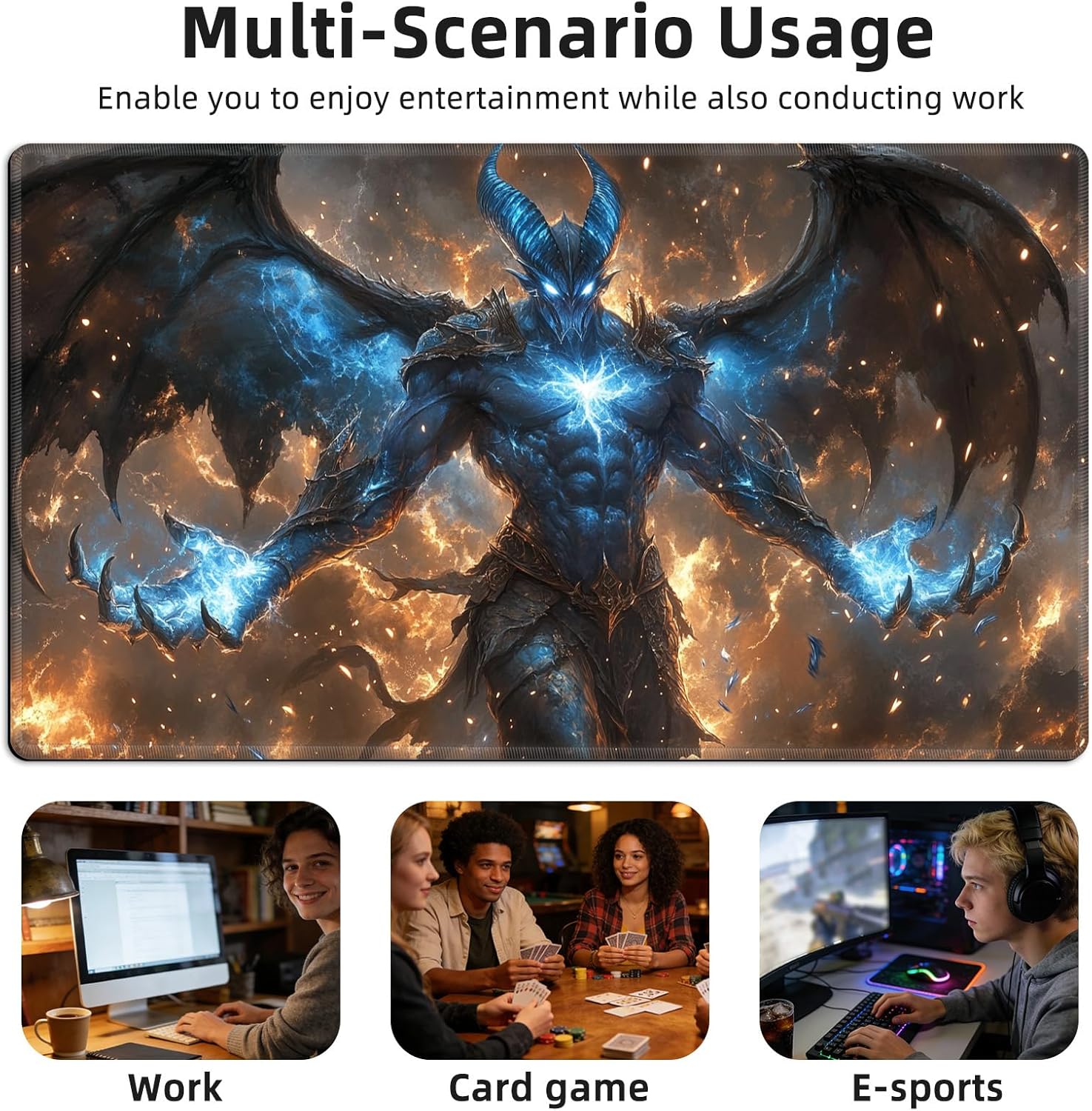 This gaming mat has smooth fabric for TCG shuffling and precise mouse control. Vibrant thermal printing offers fade-resistant details, reinforced edges and washable material ensure long use. Ideal for tabletop games and PC setups.